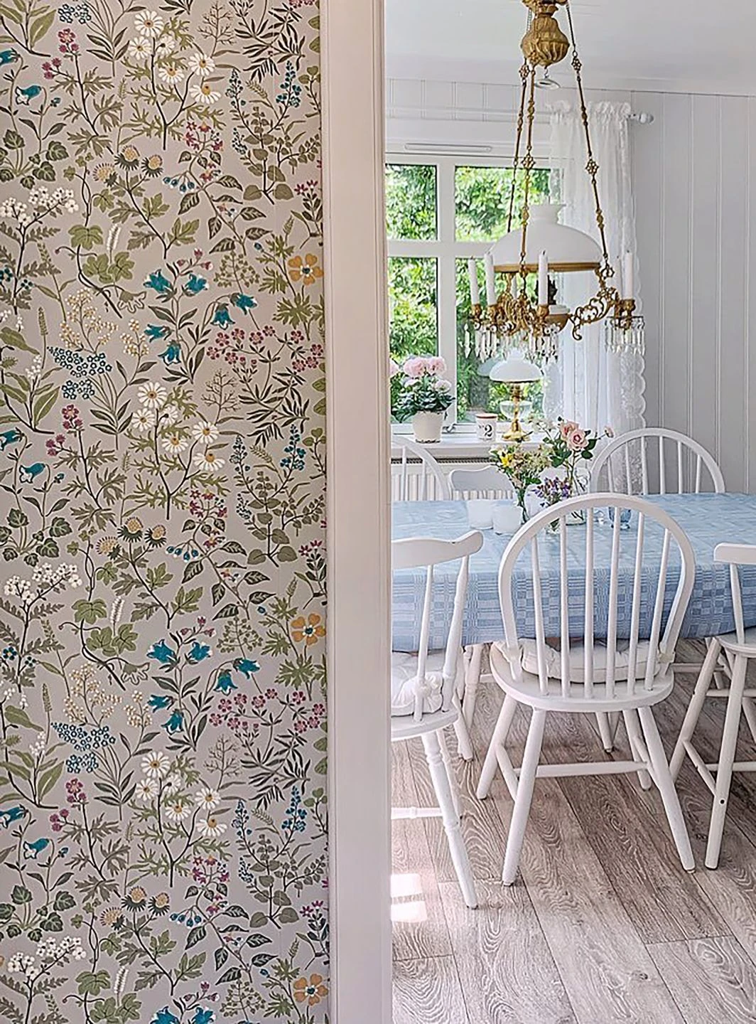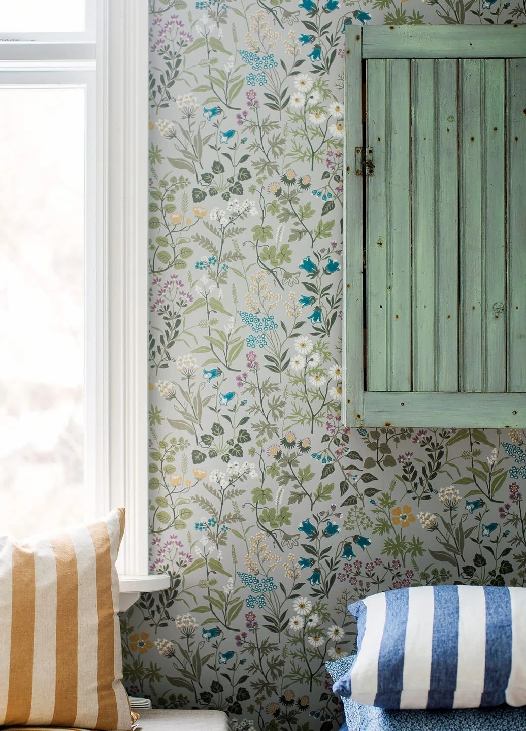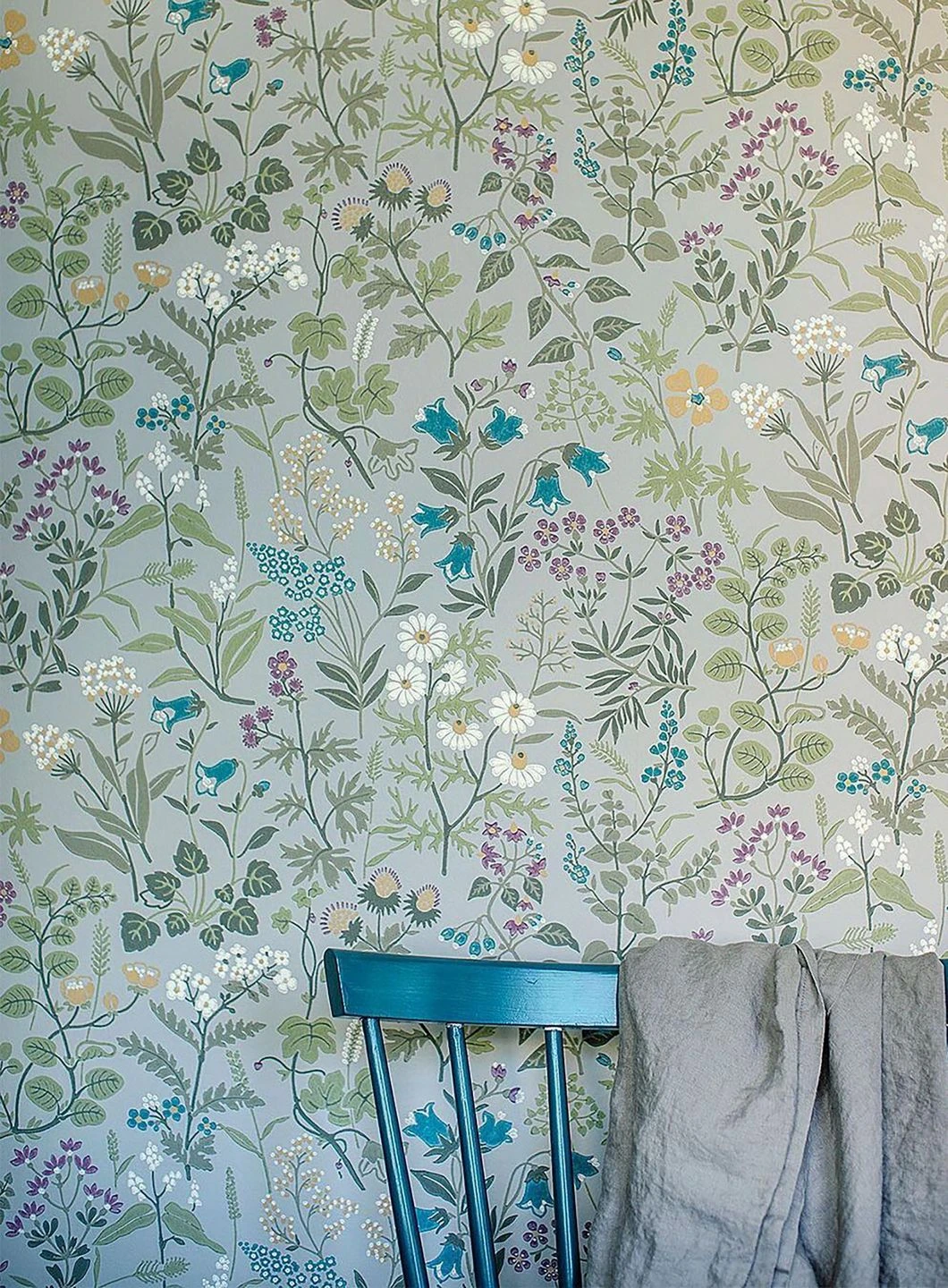 Die Blumenvielfalt einer blühenden Sommerwiese wurde im traditionsreichen Leimdruckverfahren auf diese Vliestapete gebannt: Glockenblumen, Kamille, Wiesenschaumkraut und vieles mehr ergeben einen fröhlichen Mix. Auf dem zurückhaltenden hellgrauen Untergrund strahlen die Blumen die Wärme, den Duft und die Leichtigkeit des Sommers aus und beleben Ihre Wände mit ihren bunten Blüten und den Grüntönen ihrer Blätter.