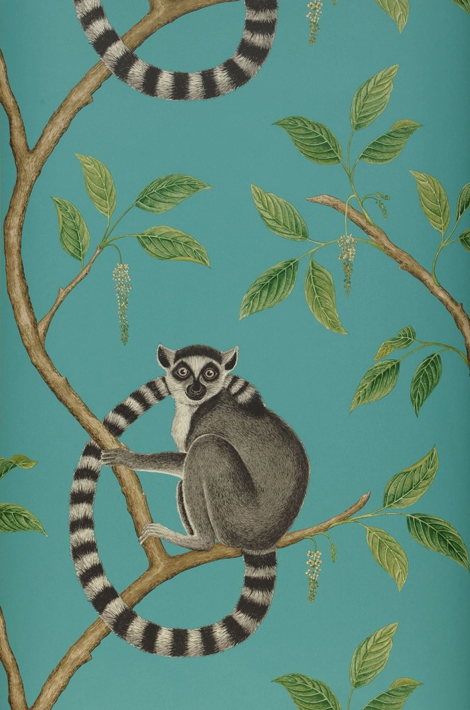 Große Augen macht das exotische Äffchen und drückt sein tiefes Wohlbefinden aus. Die ausgefallene Designtapete zaubert direkt ein Lächeln ins Gesicht und gute Laune in den Raum. Dazu trägt auch die maritime Grundfarbe Minttürkis bei, die an Urlaub am Meer denken lässt.