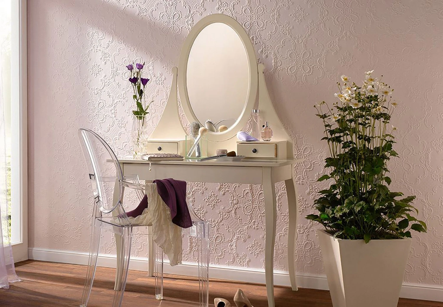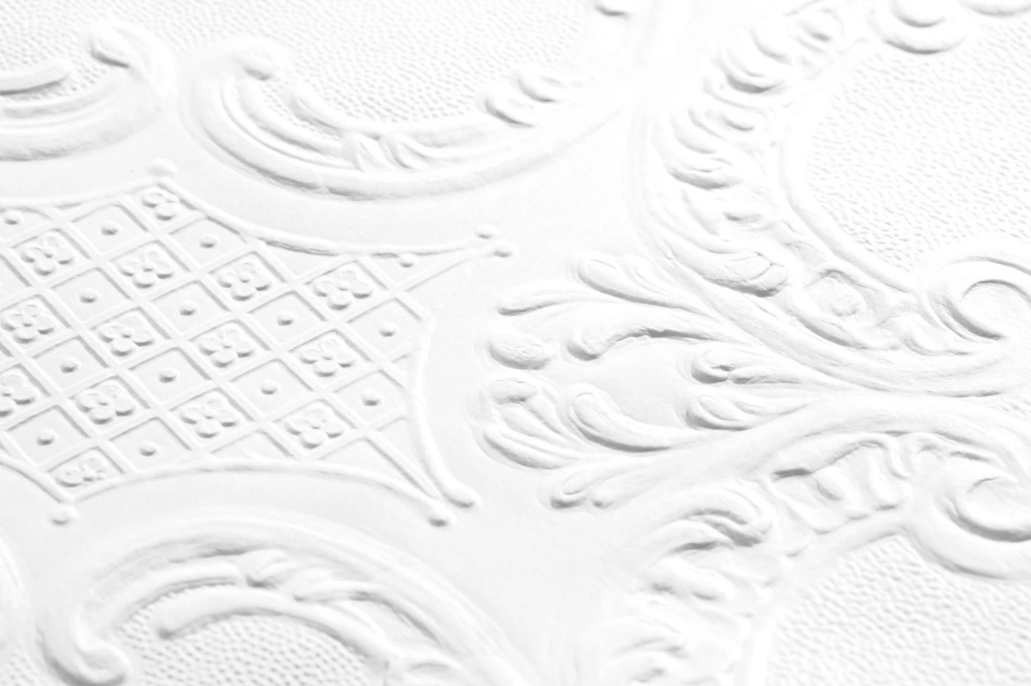 Ein klassisches Prägemuster aus historischen Ornamenten bringt Eleganz kombiniert mit britischem Understatement an die Wand Ihres Lieblingszimmers. Die fühlbar hervortretenden Elemente des Musters bieten im Spiel von Licht und Schatten ein reizvolles Bild. Was die Farbe angeht, haben Sie die Wahl: Belassen Sie die Tapete in klassischem Weiß oder geben Sie ihr mit einer tollen Wandfarbe ein neues, charaktervolles Gesicht!
