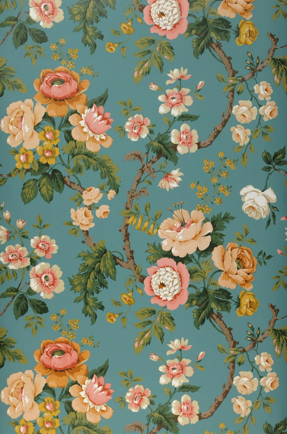 Reich geschmückt mit Blüten, deren Honiggelb, Ocker und Rosa sich kontrastreich vom intensiven Türkisblau des Untergrunds abhebt, bringt Amalfi Ihnen den niemals endenden Sommer ins Haus. Wirkungsvolle Farbschattierungen und cremefarbene Akzente betonen die Gestalt der vollen, leuchtenden Blüten, die an kräftigen Zweigen wachsen. Dazwischen sorgen frische, grüne Blätter für Abwechslung.