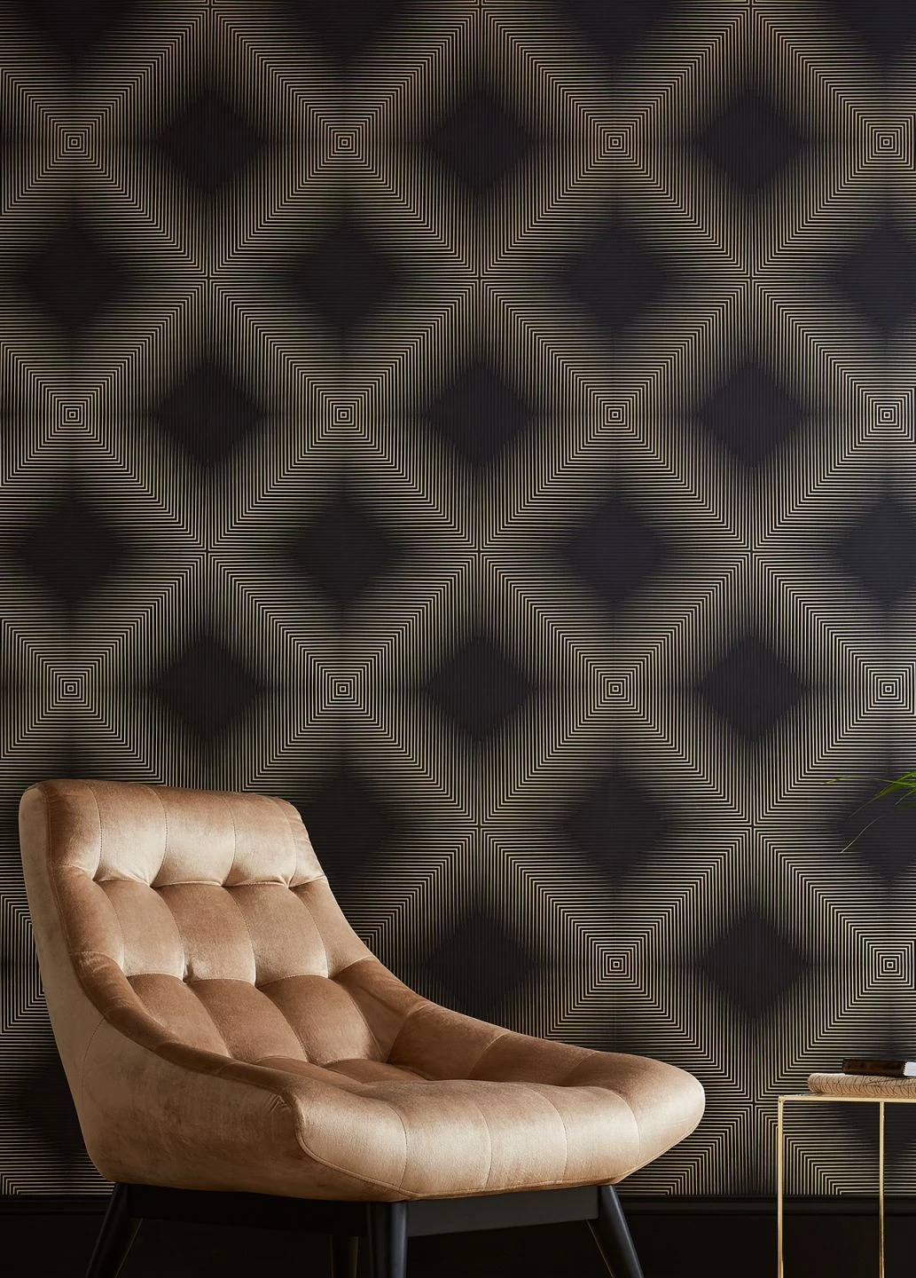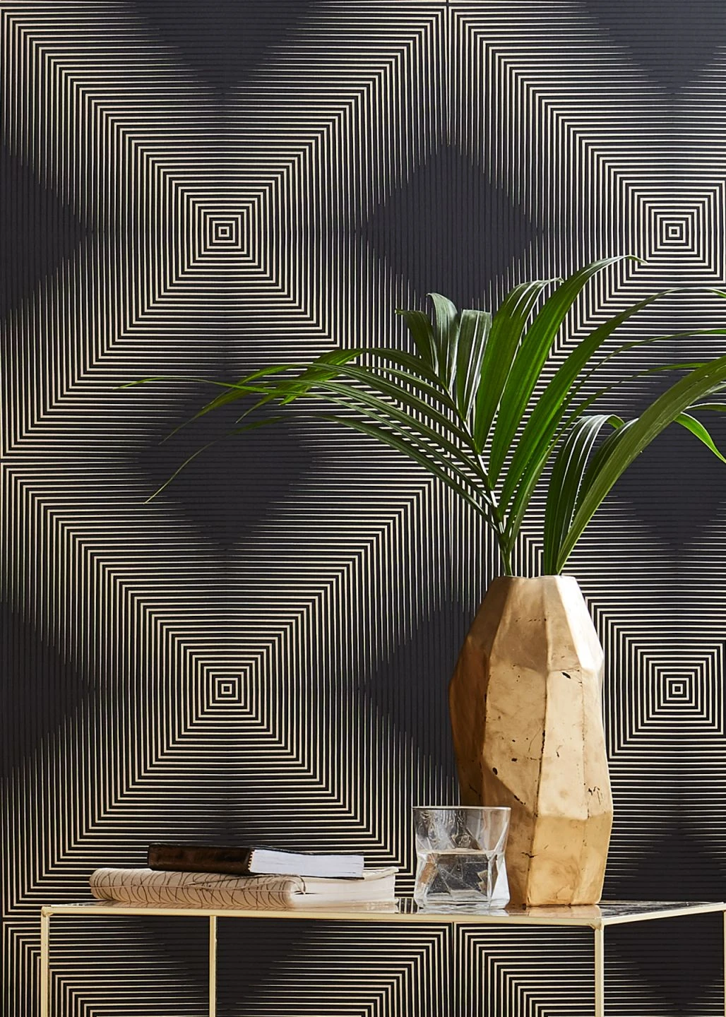 Das Spiel mit der psychedelischen Illusion ist für Designtapete Amani in Anthrazit, Perlbeige und Schwarz ein pures Vergnügen. Die berauschende Op-Art Tapete könnte von Meister Victor Vasarely höchstpersönlich entworfen sein. Die widerstandfähige Vliestapete mit glatter, abwaschbarer Oberfläche verleiht dem Raum eine spacig-poppige Atmosphäre.