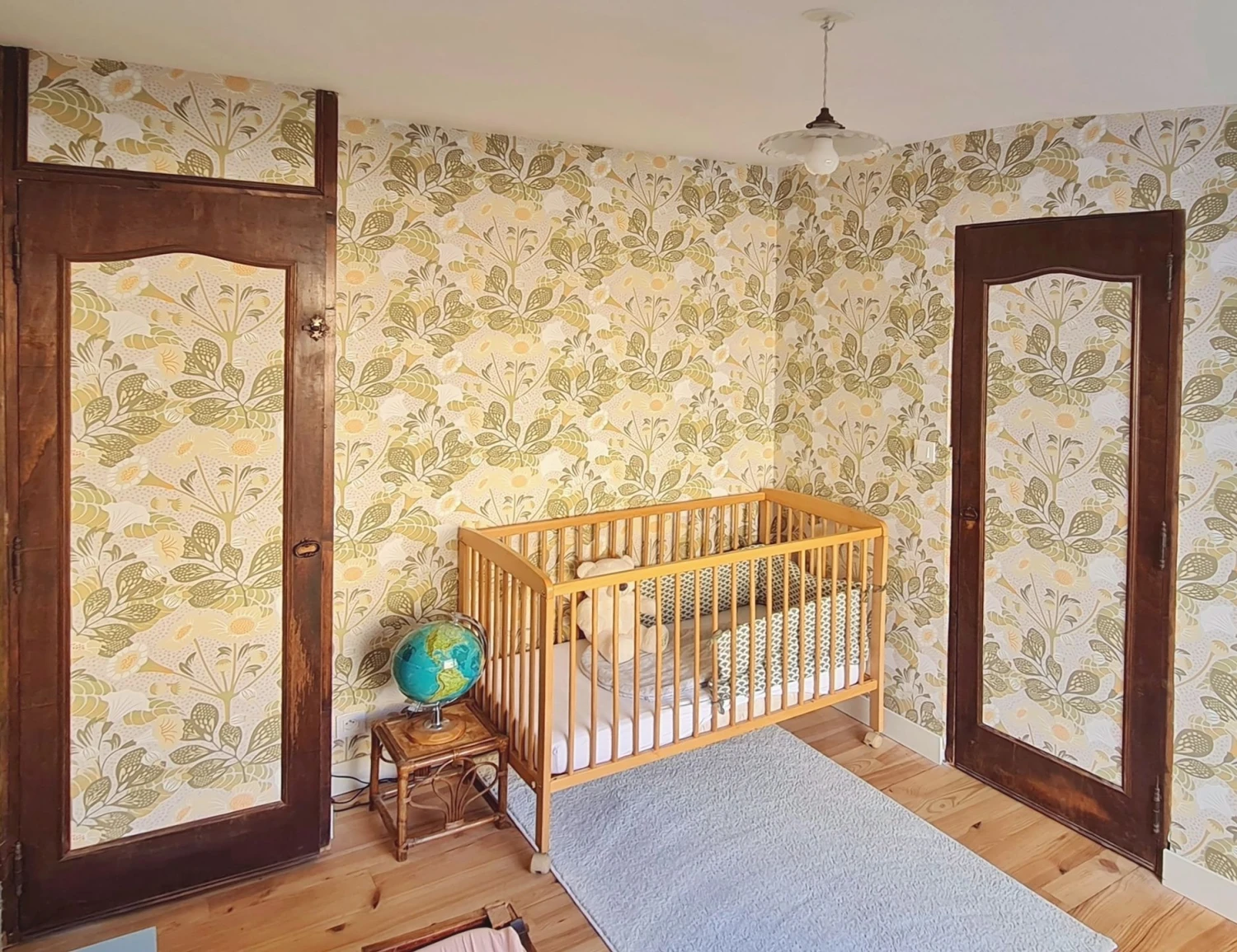 Elfenbein, Olivgelb, Olivgrau, Weiss lassen die stilisierten Trompetenblumen samt Blattwerk leichtfüßig, rein und klar in den Raum wachsen. Die feinfühlige Vliestapete mit floralem Muster ist ein herrliches Sinnbild für jeden neuen Tag, der zum Leben erwacht und daher ideal für Räume, in denen Sie sich anregende Energie wünschen.