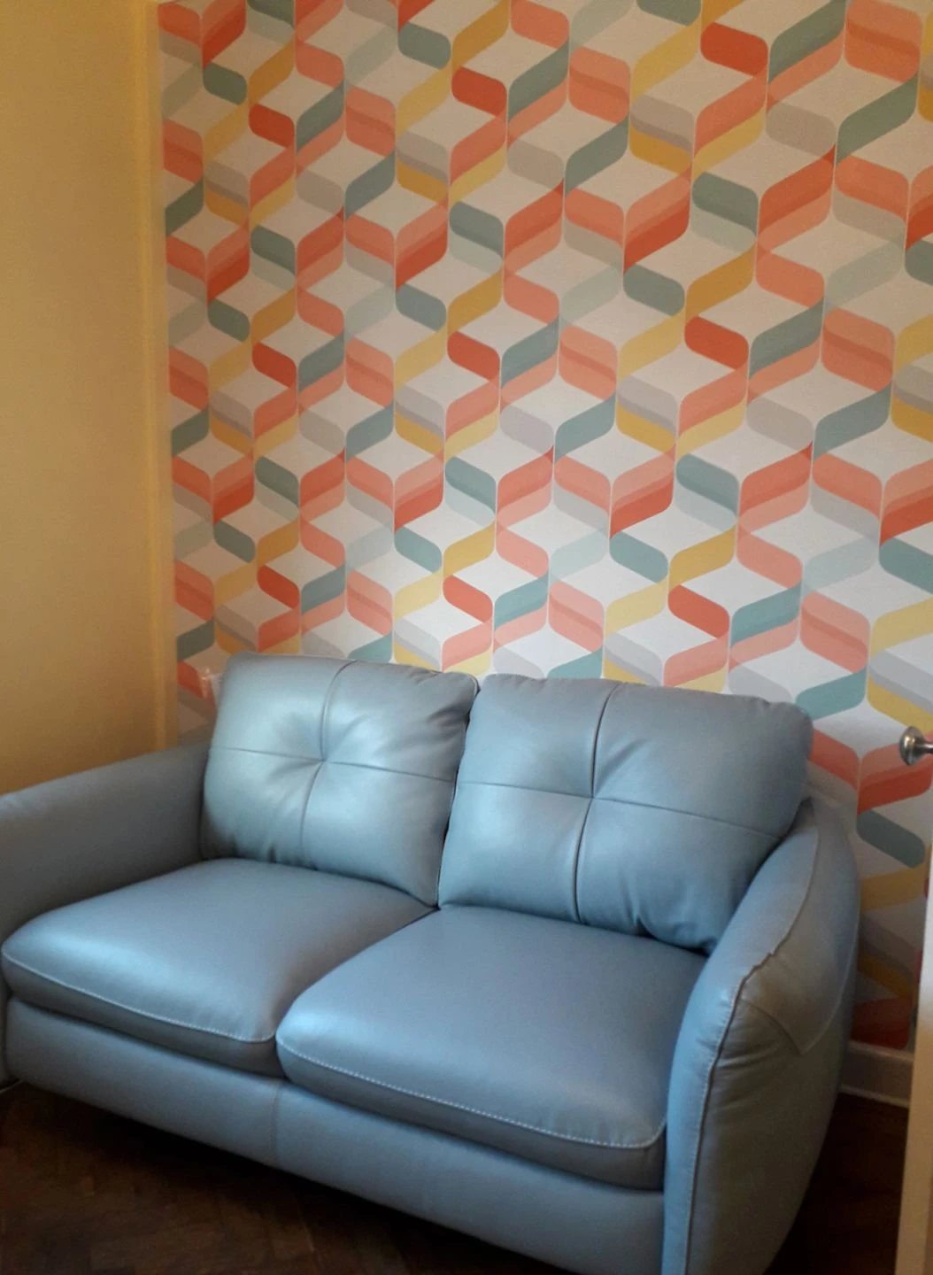 Kreativbüro, Lounge, Küche oder Kinderzimmer – Azuli im pastellbunten Retro-Rautenmuster, das sich schwungvoll an der Wand entlangschlängelt, macht einfach nur Spaß. Es lässt den Tag leben und stiftet zu neuen verrückten oder guten Taten an, lädt zu Fantasiereisen ein oder ruft zu interessanten Projekten auf.