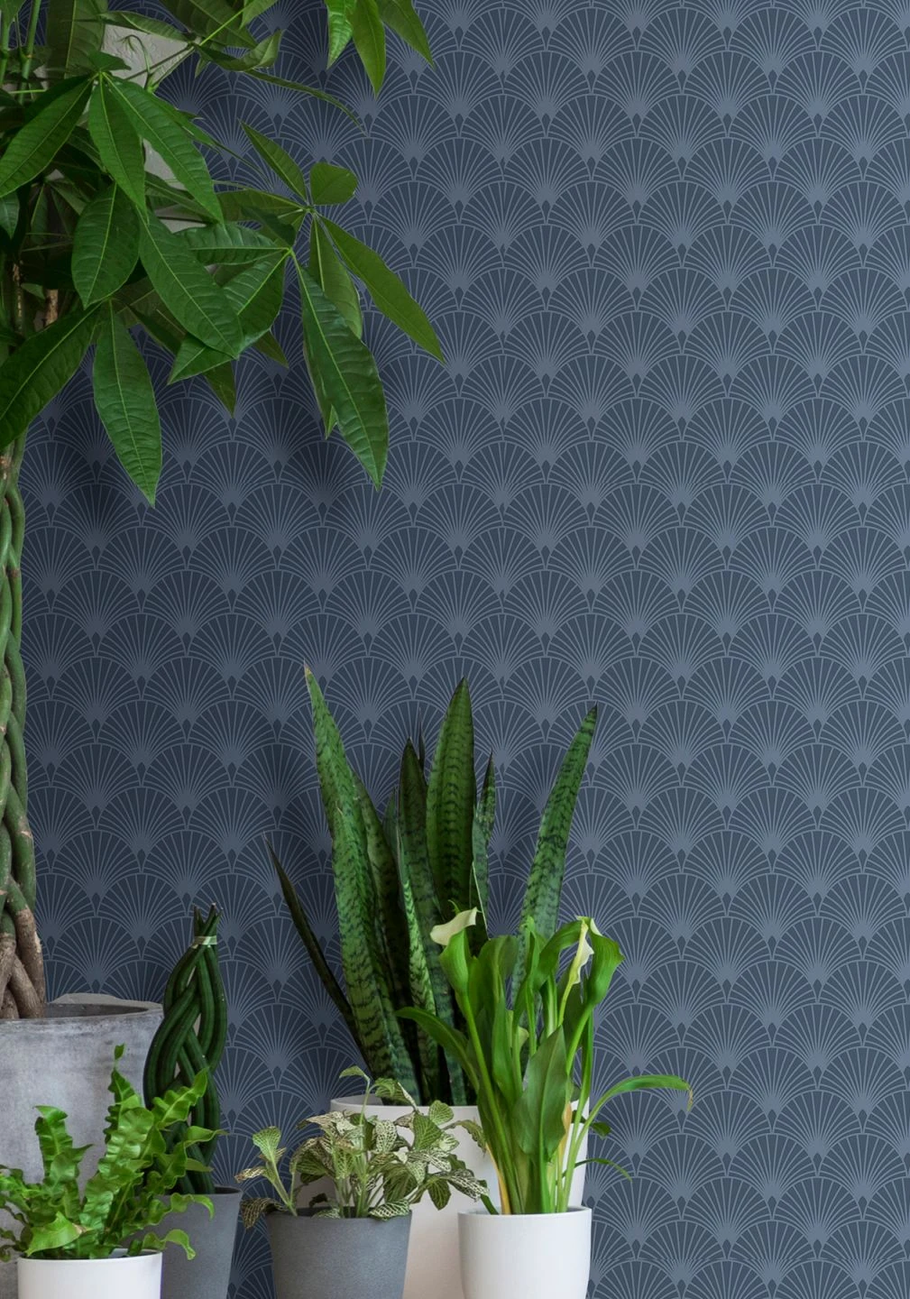 Aus dem Gegensatz von matten, erhabenen Flächen in Dunkelblau und flachen Linien in schimmerndem Pastellblau ist das Fächermuster auf der Art-Deco-Tapete aufgebaut. Ihre fühlbare Reliefstruktur gibt der Tapete zusätzliche Lebendigkeit. Das Oberflächenmaterial Vinyl, das auf die Vliestapete aufgebracht wurde, macht sie hoch waschbeständig und ermöglicht Ihnen, selbst Ihr Badezimmer mit „Babylone“ zu verschönern.