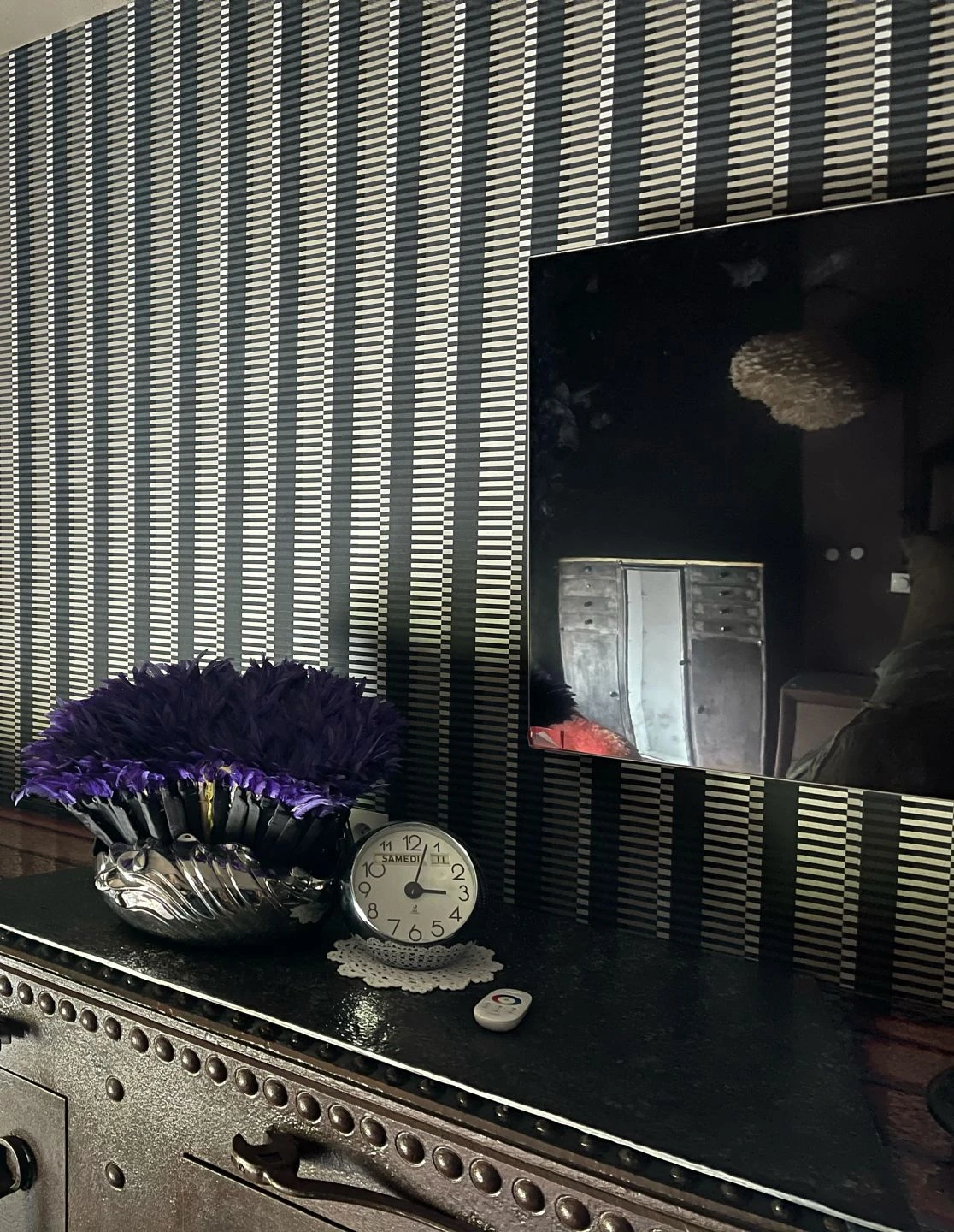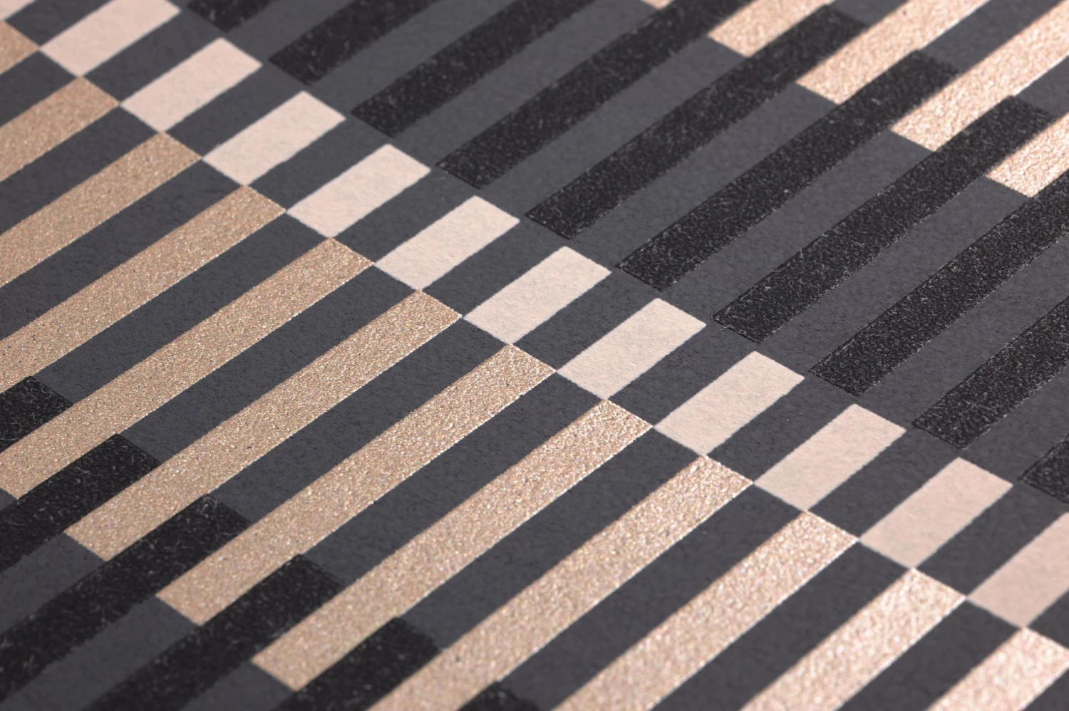 Effekthascherei, die eine Illusion vorgibt, ist die Spezialität von Designtapete Basma. Die schönsten Nuancen von Grau erschaffen hier Streifensäulen, die optisch mehrere Ebenen einnehmen und Tiefe vermitteln. Basma macht Spaß, weil sie von nah und fern betrachtet unterschiedliche Perspektiven eröffnet.