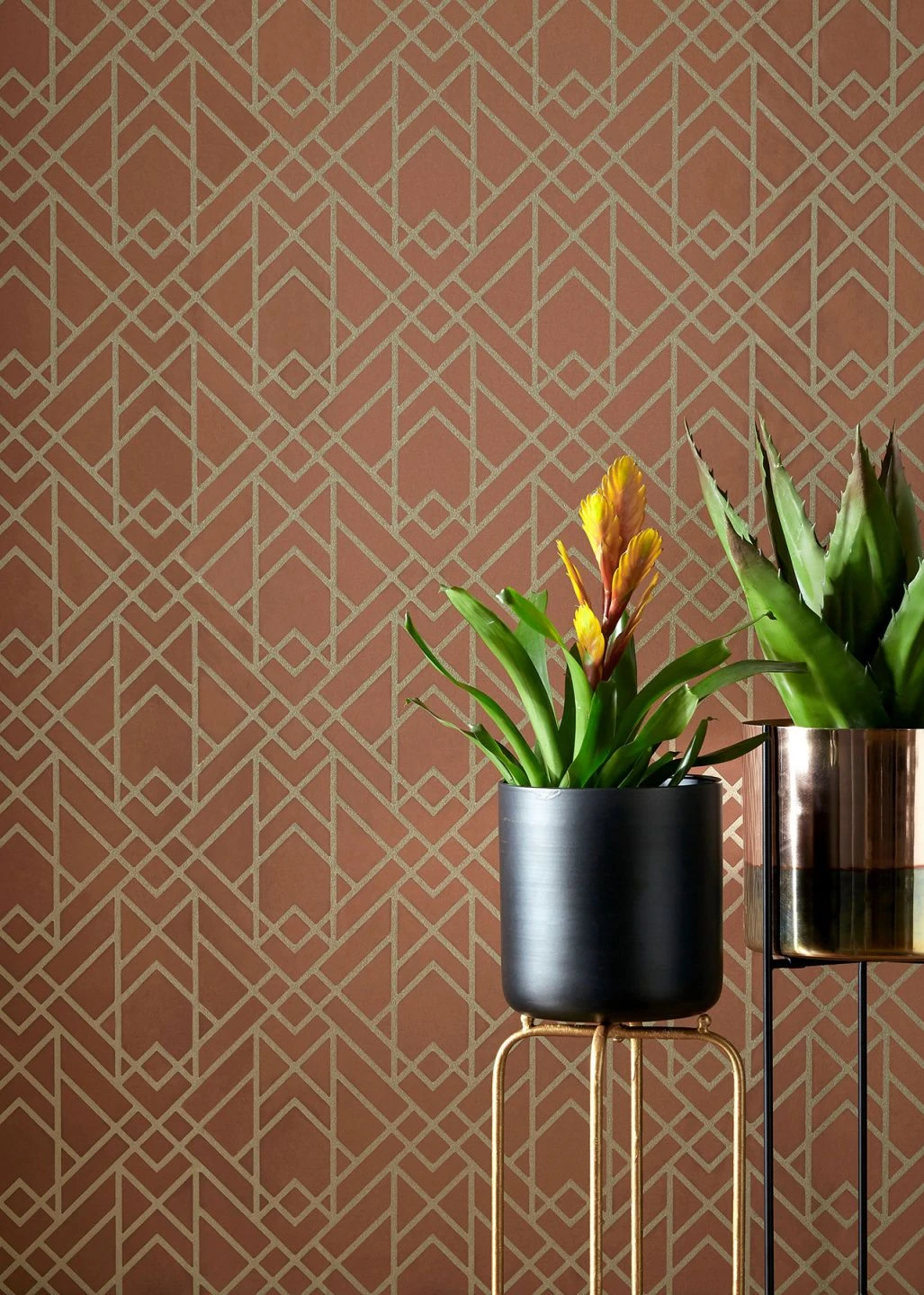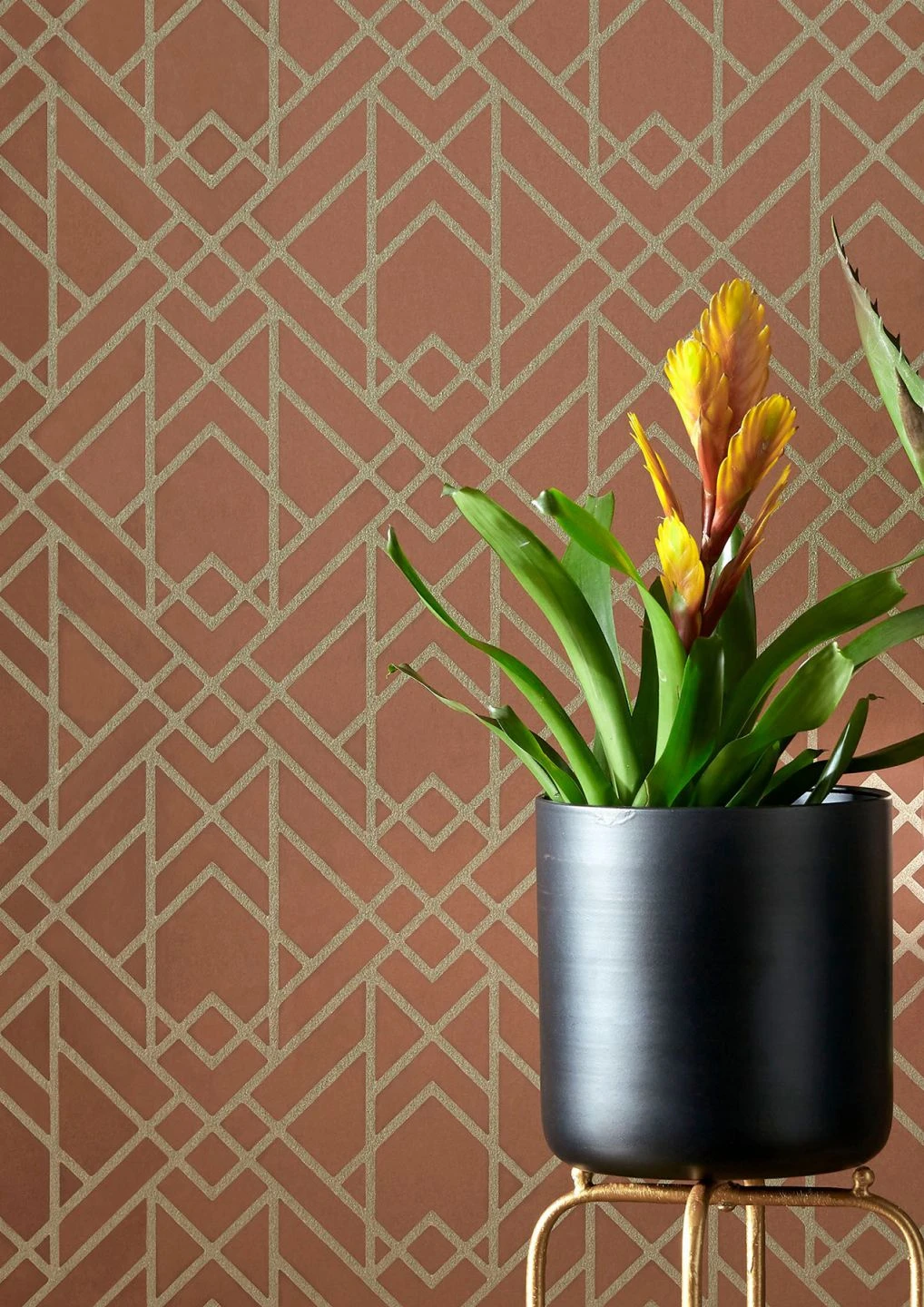 Fast orientalisch mutet die warme Farbkombination aus erdverbundenem Kupferbraun und schwelgerischem Gold an. Die klaren Linien der Art-Deco-Ornamente bilden dazu ein kräftiges Gegengewicht. Die Tapete „Baya“ bringt einen Hauch von Opulenz in Ihre vier Wände und schafft in Kombination mit den passenden Wandfarben eine ganz besondere Atmosphäre der Wärme und Eleganz gleichermaßen. Übrigens erhalten Sie sie auch in anderen reizvollen Farbtönen.