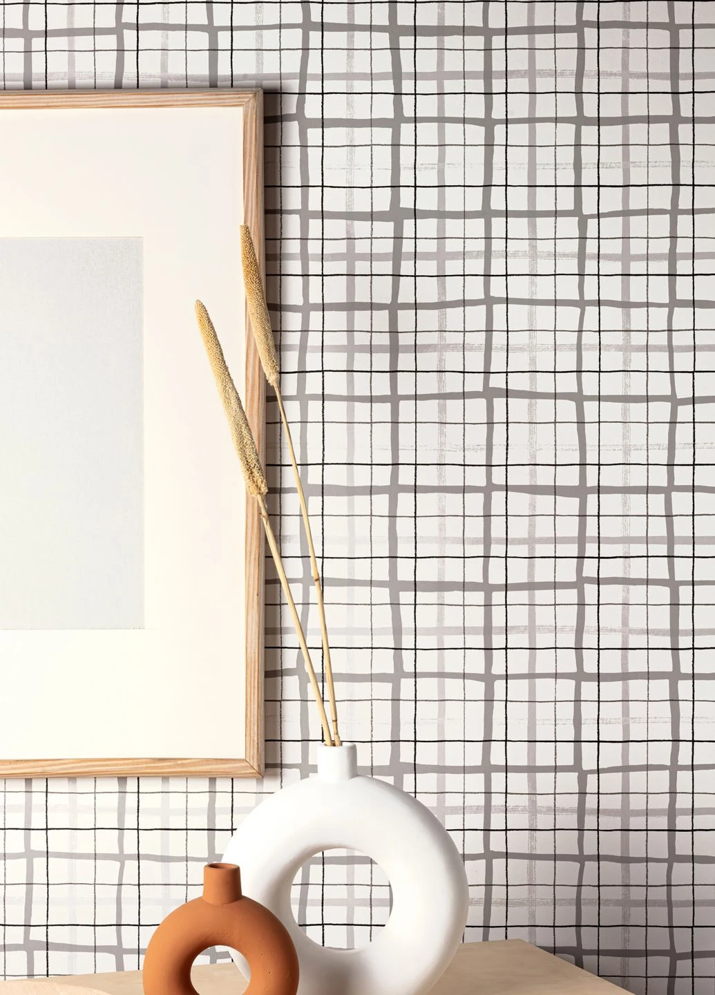 Augenzwinkernd spielt das Design der Tapete Betula mit der Tradition des Karomusters. Denn die verschieden breiten Linien in Grautönen und Schwarz wirken sympathisch handgemalt. Das monochrome Muster bietet dem Auge Halt und Ordnung, ohne streng oder einengend zu wirken. Die grauen Farben lassen ganz unterschiedliche Kombinationen zu – ob mit weiteren Non-colours oder auch im Kontrast mit bunten Farben.