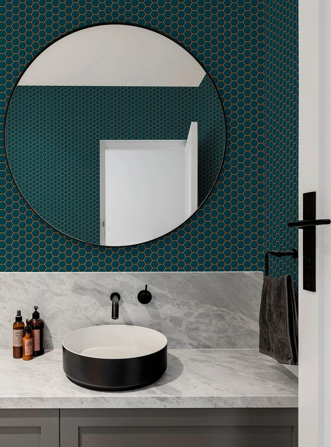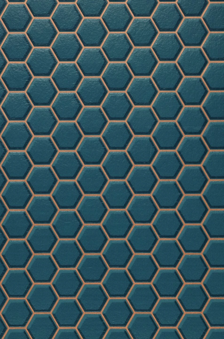 Ein gleichmäßiges wabenförmiges Muster in Wasserblau bestimmt den Charakter der Vliestapete „Bogo“. Die schimmernd kupferfarbenen Umrisse der Waben sind fühlbar in die Oberfläche der Tapete eingeprägt und lassen die einzelnen Sechsecke reliefartig hervortreten. Das Vinyl der Oberfläche macht die Tapete hoch waschbeständig, so dass sie perfekt dafür geeignet ist, Ihr Badezimmer zu einer exklusiven Wellness-Oase zu machen.