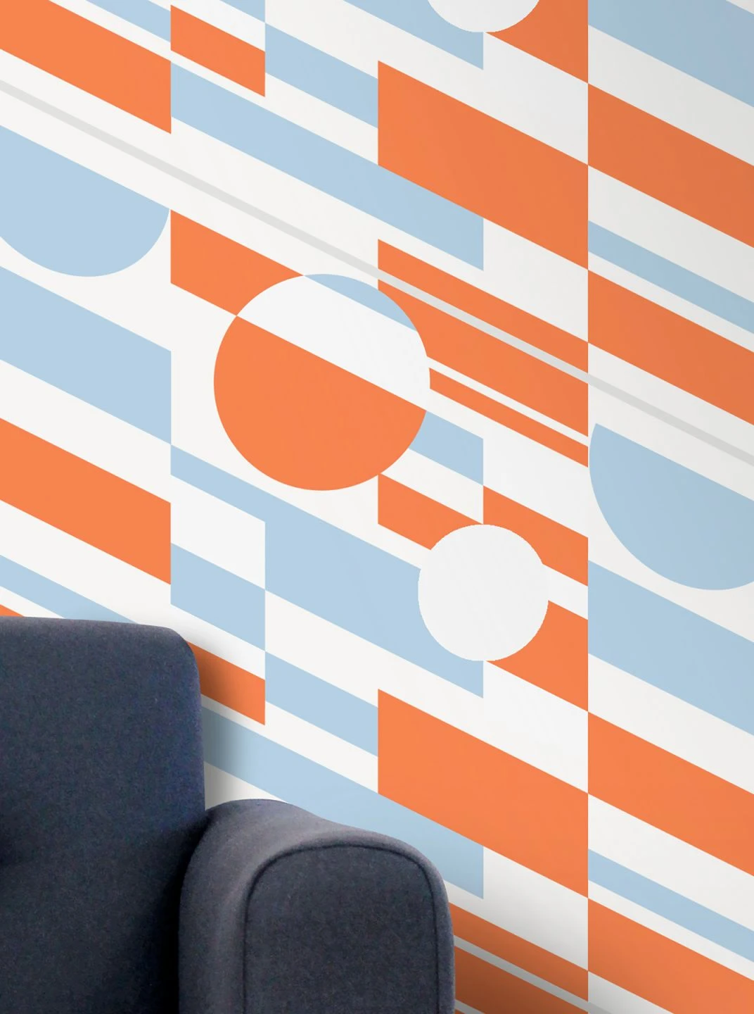 Ein rasantes Tempo legt Grafiktapete Calimero vor und beflügelt die eigene Energie. Diese moderne Kunst in Orange, Pastellblau, Silber Schimmer und Weiß ziert Räume, die keine Langeweile vertragen. Ein bisschen Provokation hingegen schon. Auch im Jugendzimmer ist die glatte Papiertapete als Understatement gefragt.