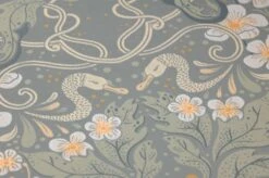 Wie in einem tropischen Paradies heben sich hier prächtige Vögel, bunte Schmetterlinge und phantasievolle Blumen in leuchtendem Orange, Pink und Gelb vom kräftigen Ozeanblau des Hintergrunds ab. Durch die vinylbeschichtete Oberfläche erhalten die Farben zusätzliche Strahlkraft. Gleichzeitig sorgt das Oberflächenmaterial dafür, dass Sie die Tapete vielseitig einsetzen können – sogar für das Badezimmer eignet sie sich perfekt!