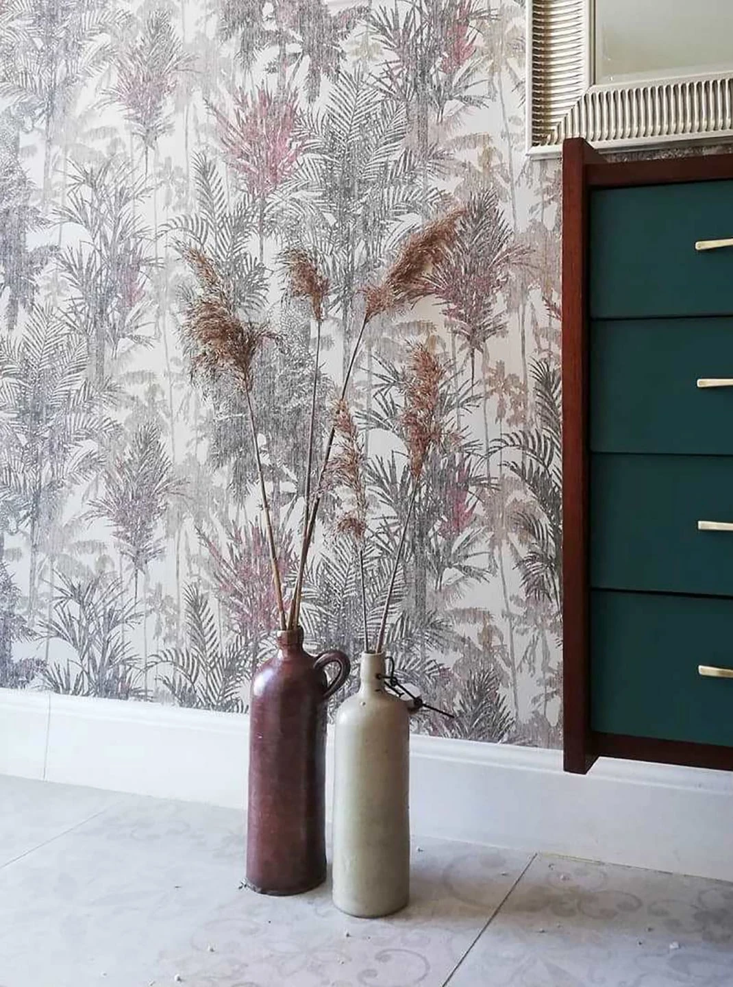 Man muss schon etwas genauer hinsehen, um den großen Leoparden in dieser exotischen Palmenszenerie zu entdecken. Dieser reizvolle Effekt in Verbindung mit dem textilartigen hochwertigen Strukturdesign macht Vinyltapete Casaba zu einem Überraschungskünstler, der auch in stark beanspruchten Räumen zum Einsatz kommen kann.