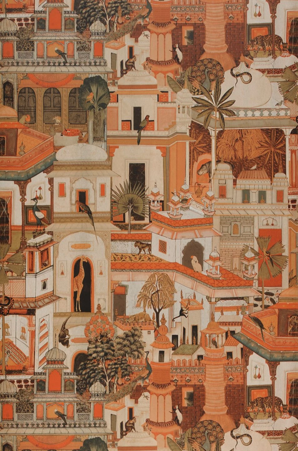 - DesignAffen, Bäume, Giraffen, Orientalische Gebäude, Palmen, Papageien, Pfauen, Tiere