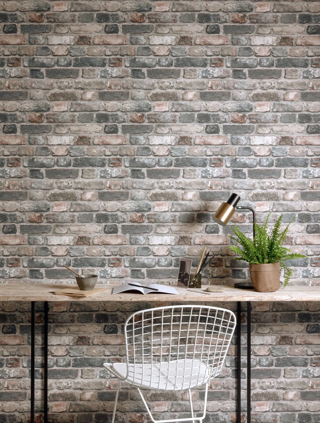Eine Wand aus Ziegelsteinen in außergewöhnlichen Grau- und Brauntönen verleiht dem Industrial Chic eine stylische Ausstrahlung. Vliestapete Castor bildet die Ästhetik einer Ziegelwand nicht nur optisch nach: Die feine Struktur der Vinyloberfläche macht sie besonders realistisch und gleichzeitig so unempfindlich, dass sie auch Ihr Badezimmer mit ihrem zeitlosen und bodenständigen Charme verschönern kann.