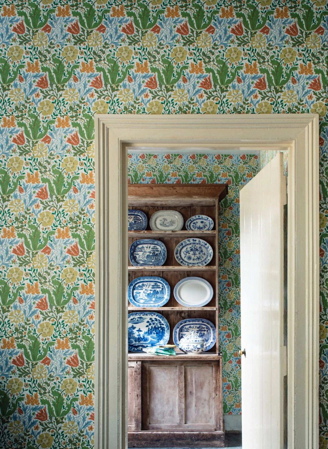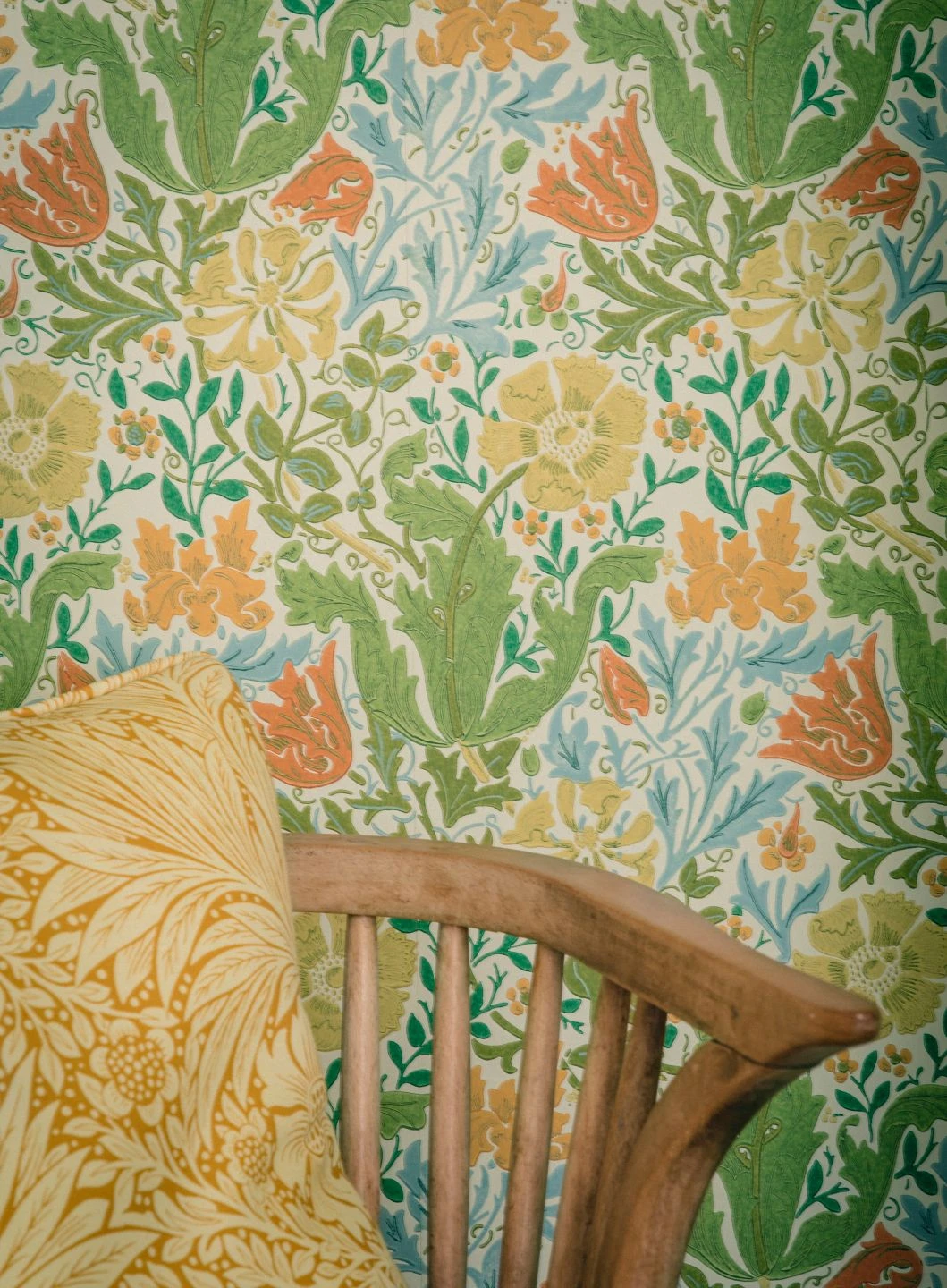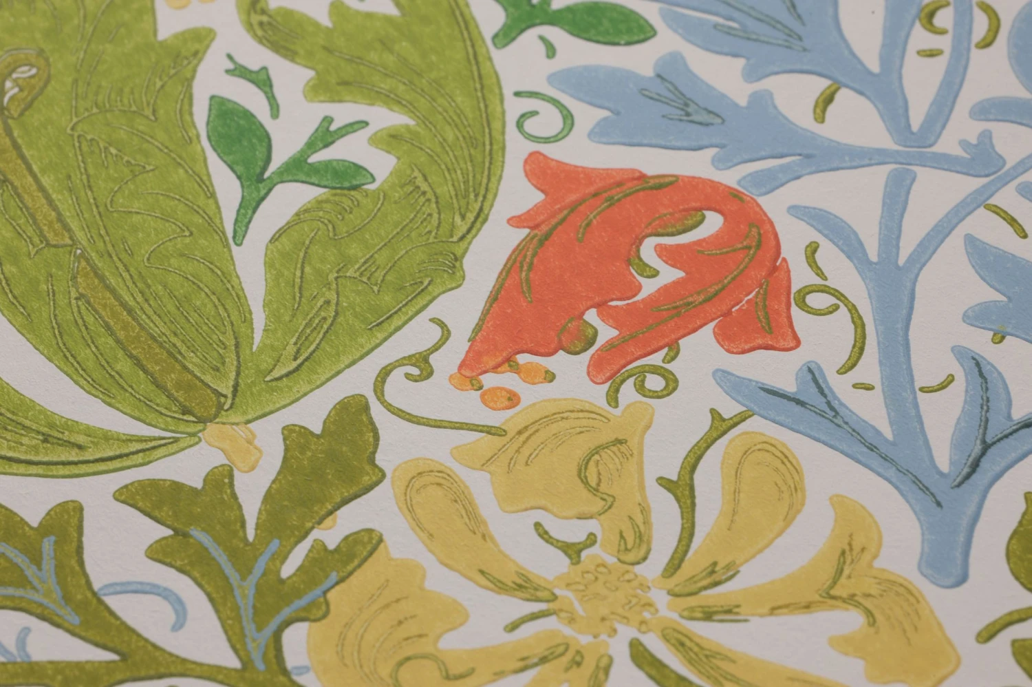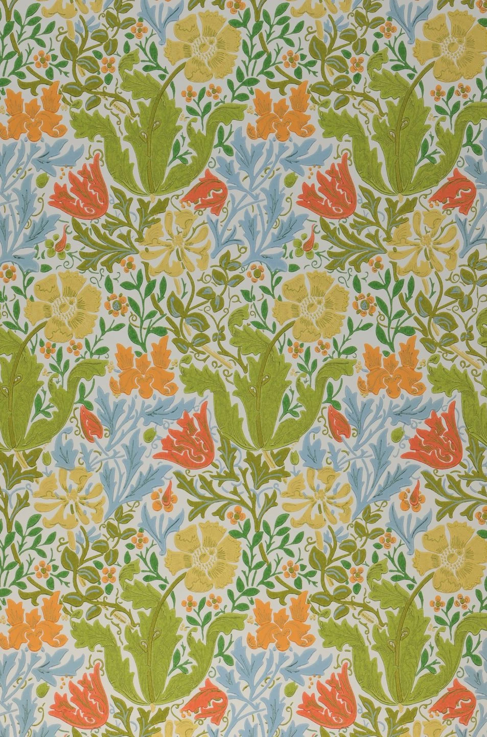 - MusterfarbeGrüntöne, Hellgelb, Orange, Orangerot, Pastellblau