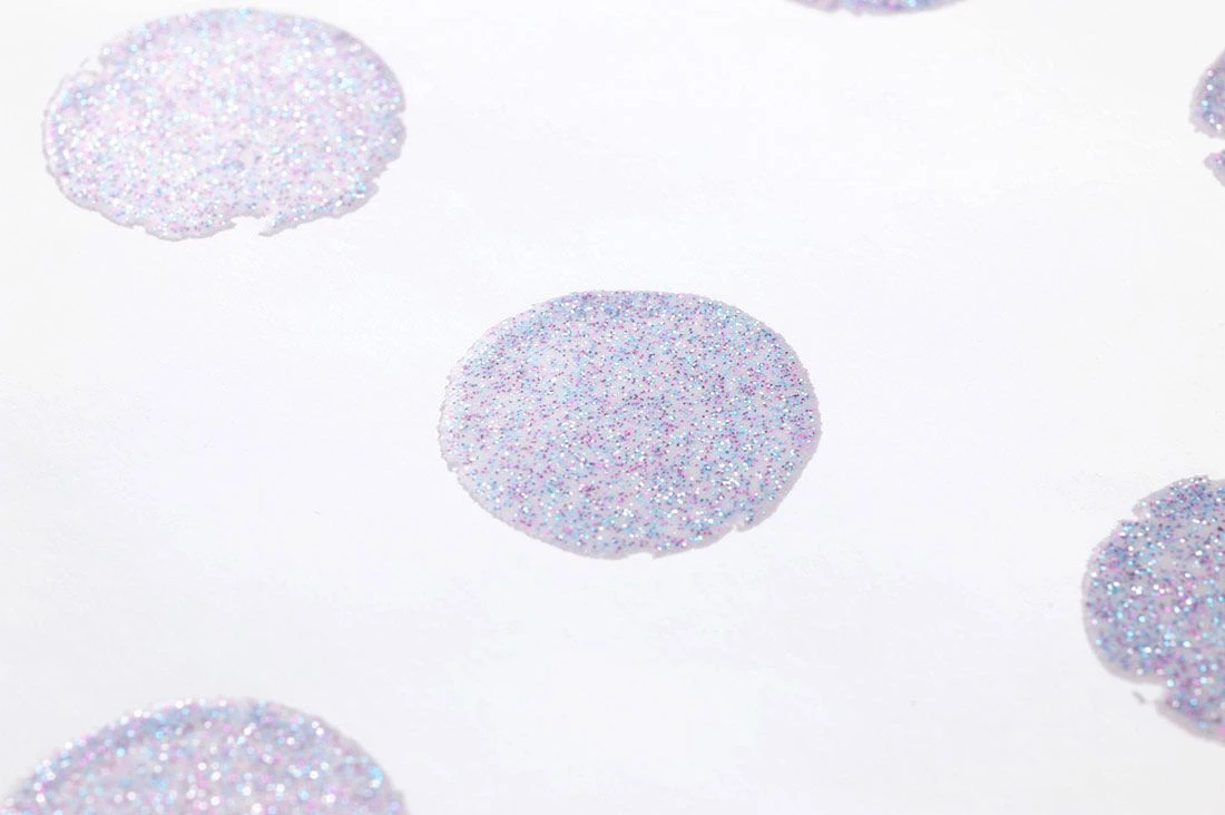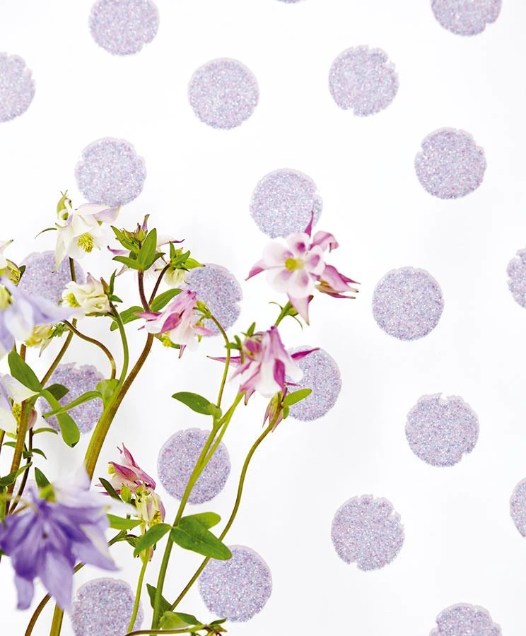 Das angenehm ruhige Blaulila der runden Tupfen auf cremeweißem Grund wird aufgepeppt durch Glitter in passenden Farbtönen. Heraus kommt ein Eindruck von sanfter Fröhlichkeit und heiterer Gelassenheit. Die Tupfen sind als feine Reliefstruktur auf der glatten Oberfläche der Tapete fühlbar. Eine gastfreundliche Küche, ein gemütliches Schlafzimmer oder Ihr Wohnzimmer als Mittelpunkt des Familienlebens gewinnen mit „Corbetta“ an Ausstrahlung.