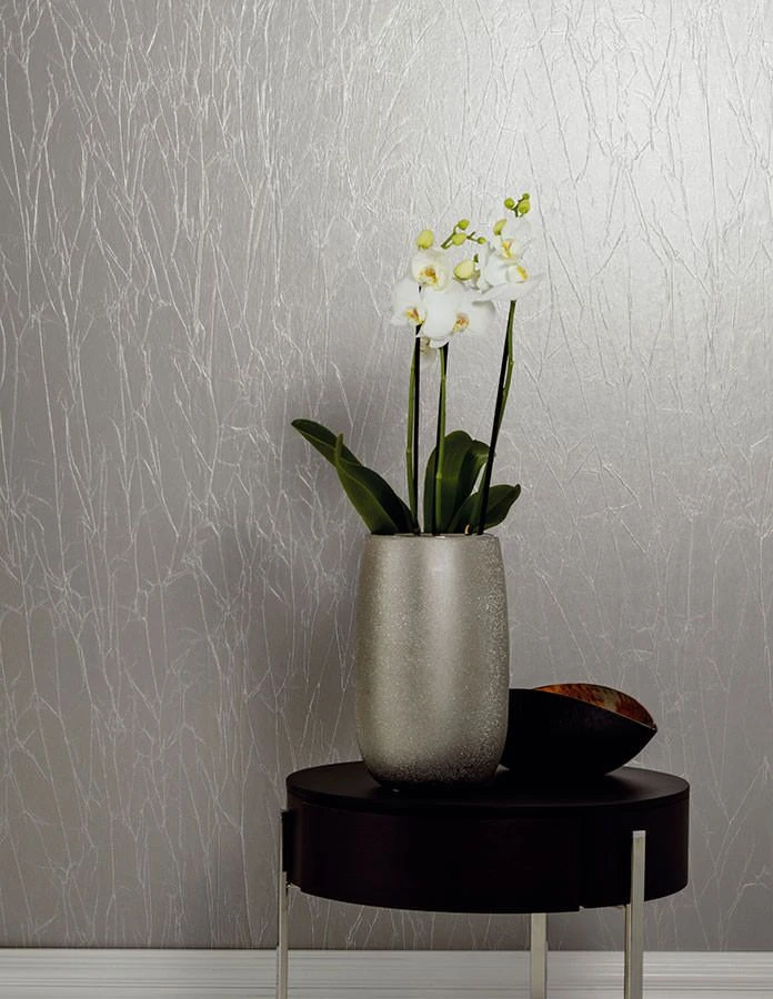 Space Age Fans dürfen sich auf diese extravagante Crush Tapete mit einer Fülle an kunstvollen Knitterfalten freuen. Die silbergraue Erscheinung mit schimmernder Optik erhält durch direkten Lichteinfall noch mehr Intensität. Das willkürlich freie Faltenmuster bringt spannende Bewegung ins Spiel und hebt sich als fühlbares Relief ab.