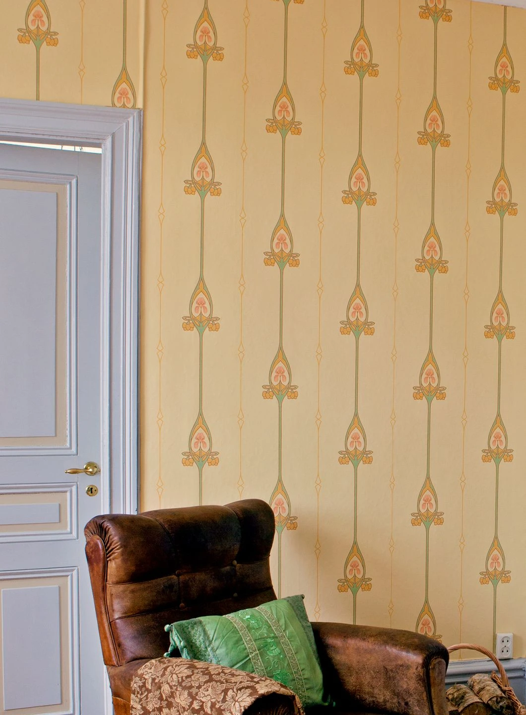 Angelehnt an die hohe Graphikkunst des Jugendstils präsentiert sich die hellgelbe Ausführung der klassischen Tapete auf das Wesentliche reduziert. Gerade das verleiht ihr eine außergewöhnliche Anziehungskraft. Das beschwingte Muster regt Fantasie, Gedanken und Kommunikation an. Die fruchtig-natürlichen Musterfarben Blassgrün, Pastellgelb, Rehbraun und Rosé sorgen für positive Stimmung.