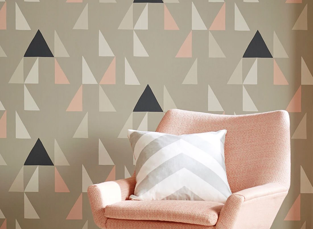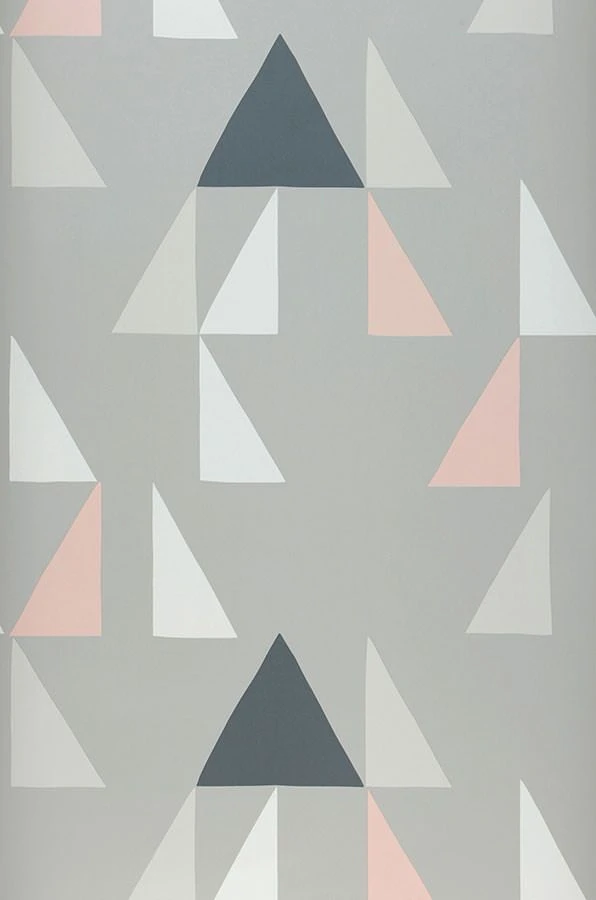 Verschieden ausgerichtete Dreiecke geben Ihrer Wand dezente Struktur. Zwischen den perfekt aufeinander abgestimmten Farbtönen – Cremeweiß; Hellgraubeige und Hellrosa auf einem neutralen hellgrauen Grund – fallen dunkel schwarzgraue Dreiecke ins Auge, die der Tapete einen Rhythmus verleihen. Die verwendeten Farben ergänzen eine Vielzahl unterschiedlicher Einrichtungsstile, während die klaren geometrischen Formen zu charaktervollen Möbelformen passen.