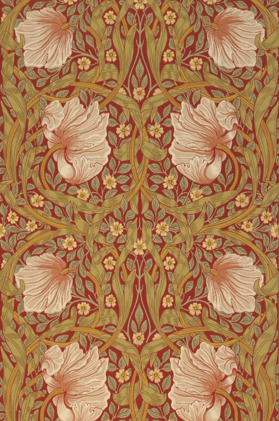 Die im klassischen Leimdruckverfahren hergestellte Papiertapete „Despina“ ist eine Berühmtheit: Sie geht auf ein Design des britischen Künstlers und Designers William Morris zurück. Der purpurrote Untergrund bringt die hellen Blüten, deren Zartheit man fast zu spüren meint, besonders schön zur Geltung. Um die verschieden großen Blüten schlingen und winden sich Blätter in verschiedenen Grüntönen.