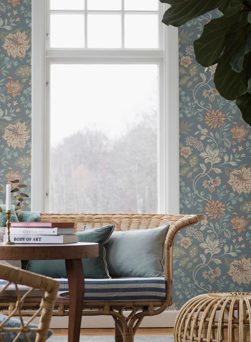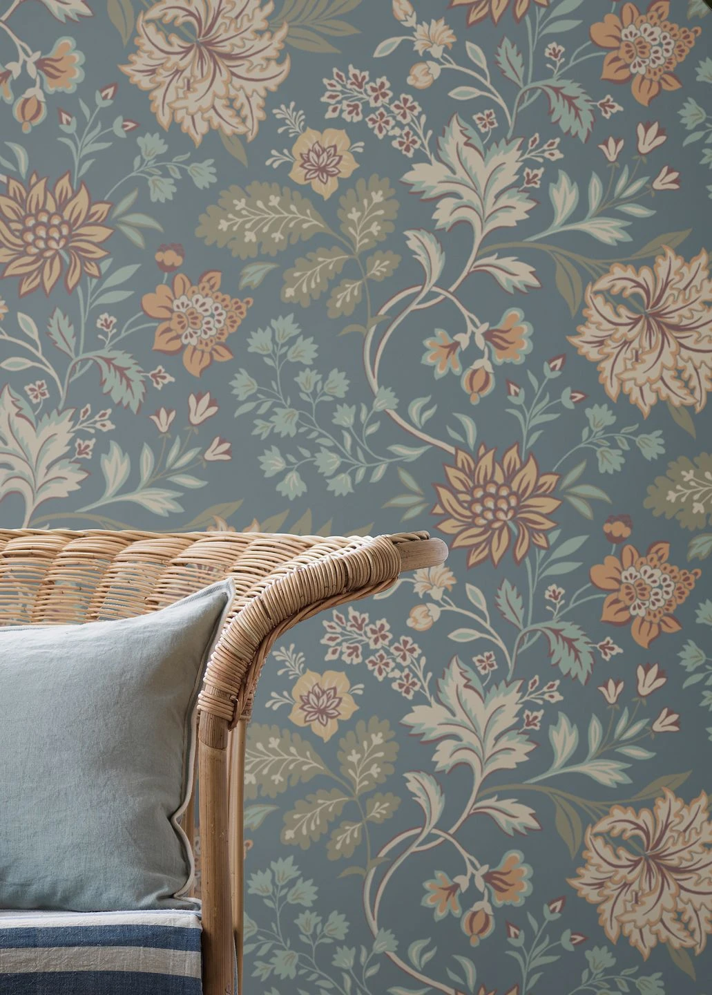 In der Ruhe ihrer Farben liegt die Kraft der im Leimdruckverfahren hergestellten Vliestapete Ebba. In zauberhaften Formen ranken sich Zweige, Blätter und Blüten über die Fläche Ihrer Wand. In Verbindung mit dem stillen Mintgrau des Untergrunds bilden die gedeckten, blassen Blau-, Grau- und Beigebrauntöne wie selbstverständlich eine Einheit. Die zurückhaltende Farbigkeit und das stilisierte Muster der Blumen und Ranken geben Ihrem Raum würdevolle Ausstrahlung.