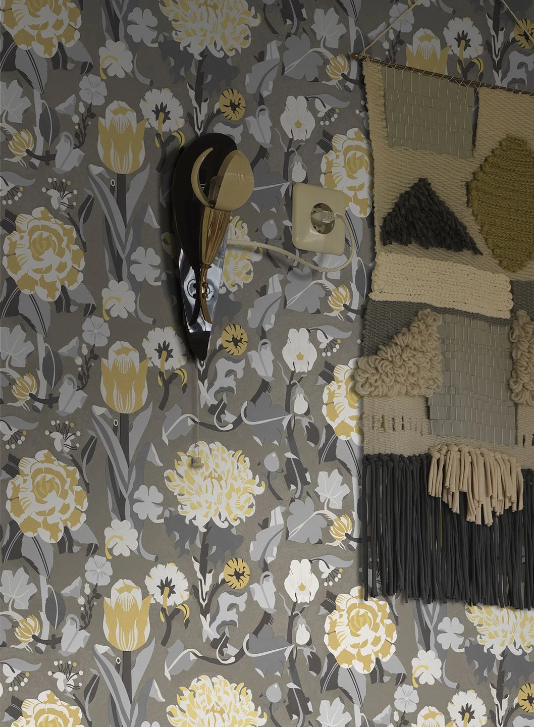 Außergewöhnlich und besonders raffiniert ist die Kombination der hellen Gelb- und Grautöne der ausdrucksstarken Blüten und Blätter mit dem quarzgrauen Untergrund. Die Farbzusammenstellung bringt zurückhaltende Lebendigkeit in Ihre Räume und lässt die expressiv dargestellten Formen und Farbflächen der Blumen ihre ganze Wirkung entfalten. Perfekt für Wohn- oder Schlafzimmer im freundlich-hellen skandinavischen Stil, Landhaus und Vintage-Möbel, aber auch für einen gemütlichen Gastraum.