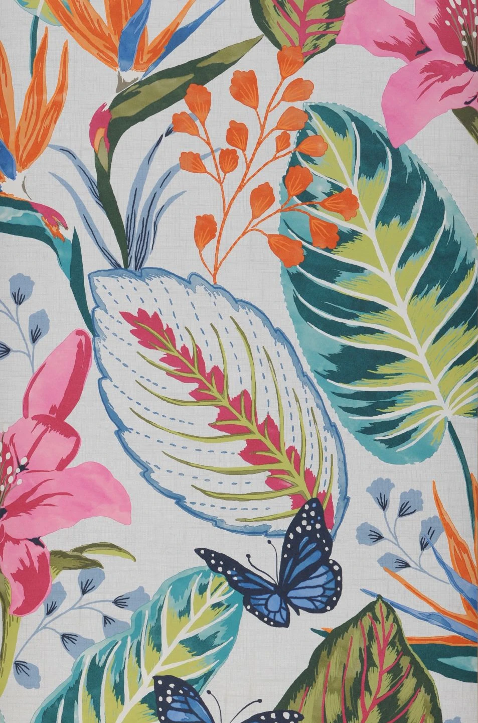 Farbenfroh, auffällig gemustert und skurril geformt – die exotischen Pflanzen mit ihren kräftigen Blättern und spektakulären Blüten, zwischen denen Schmetterlinge flattern, entführen Sie aus dem Alltag in das Paradies einer tropischen Insel. Poppige Farben mit dem Schwerpunkt auf Pink- und Orangetönen erinnern an eisgekühlte Cocktails mit frischen Fruchtsäften. Spüren Sie schon die warme Sonne auf Ihrer Haut?