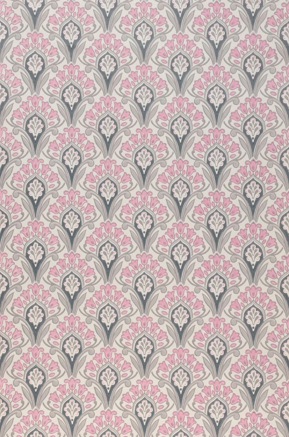 Ganz klassisch angeordnet sind die Elemente im Jugendstil, die sich aus stilisierten Blüten und Blättern zu einem Gesamtbild zusammensetzen. Helles Rosa und Grautöne auf Cremeweiß wirken duftig und zart. Ein hell eingerichtetes Wohnzimmer oder ein Schlafzimmer in Weiß und Rosa erhält einen Hauch von Klasse, der durch die besondere Ästhetik des Leimdruckverfahrens, mit dem die Papiertapete hergestellt wurde, wirkungsvoll unterstrichen wird.