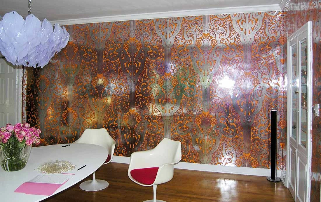 Wenn Elemente des Jugendstils in die psychedelische Kunst der 70er Jahre hinein fortgedacht werden, entsteht dabei etwas ganz Neues – wie diese sinnlich-opulente Vliestapete von Flavor Paper! In leuchtendem Orange, abgesetzt mit Pink und glänzendem Chromeffekt, könnte die Farbwelt der Tapete ein Plattencover ebenso schmücken wie Ihr Wohnzimmer, Ihren Partykeller oder Ihren Hobbyraum. Sie erhalten die außergewöhnliche Tapete ab einer Mindestmenge von drei Rollen.