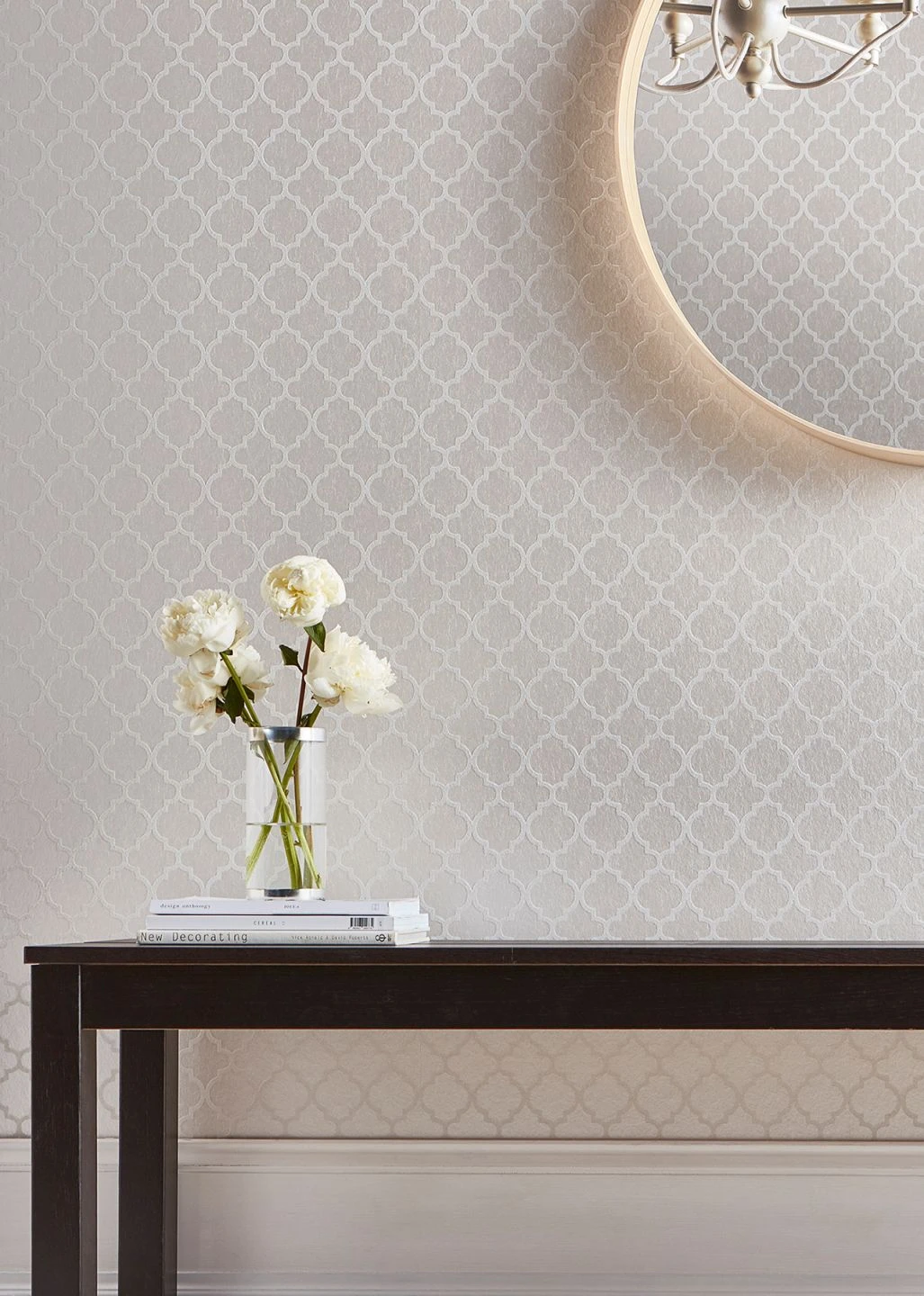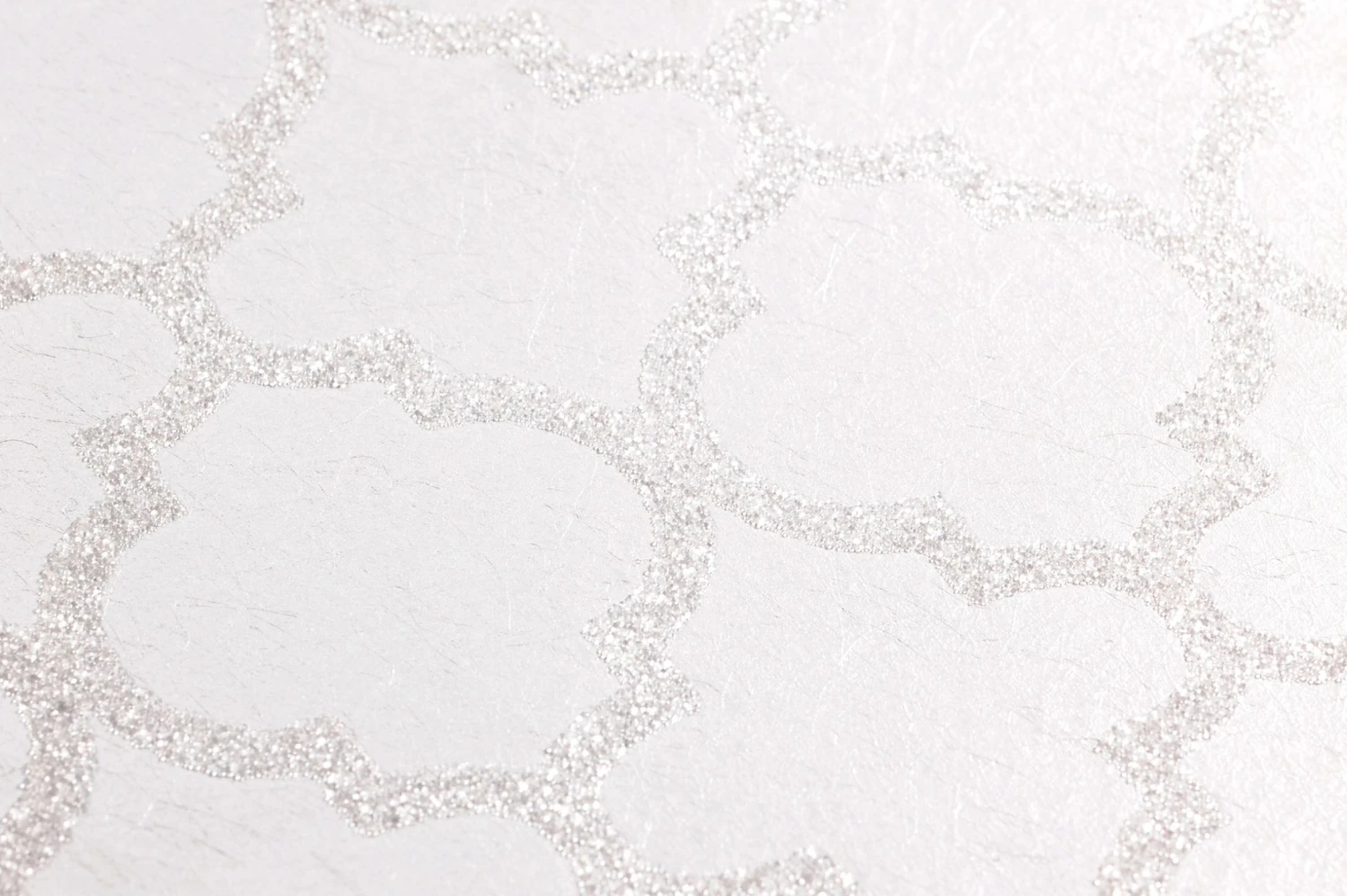 Die weiße Schönheit aus tausend und einer Nacht setzt auf feinen Perlglanz, der das Licht nach Lust und Laune einfängt und mit ihm spielt. Funkelnde Glasperlen besetzten das runde Ornamentmuster im arabischen Stil. Das erlesene Souvenir von Sindbads Reisen erschafft Palastatmosphäre in Schlafzimmer, Wohnzimmer oder auch in Flur und Treppenhaus.