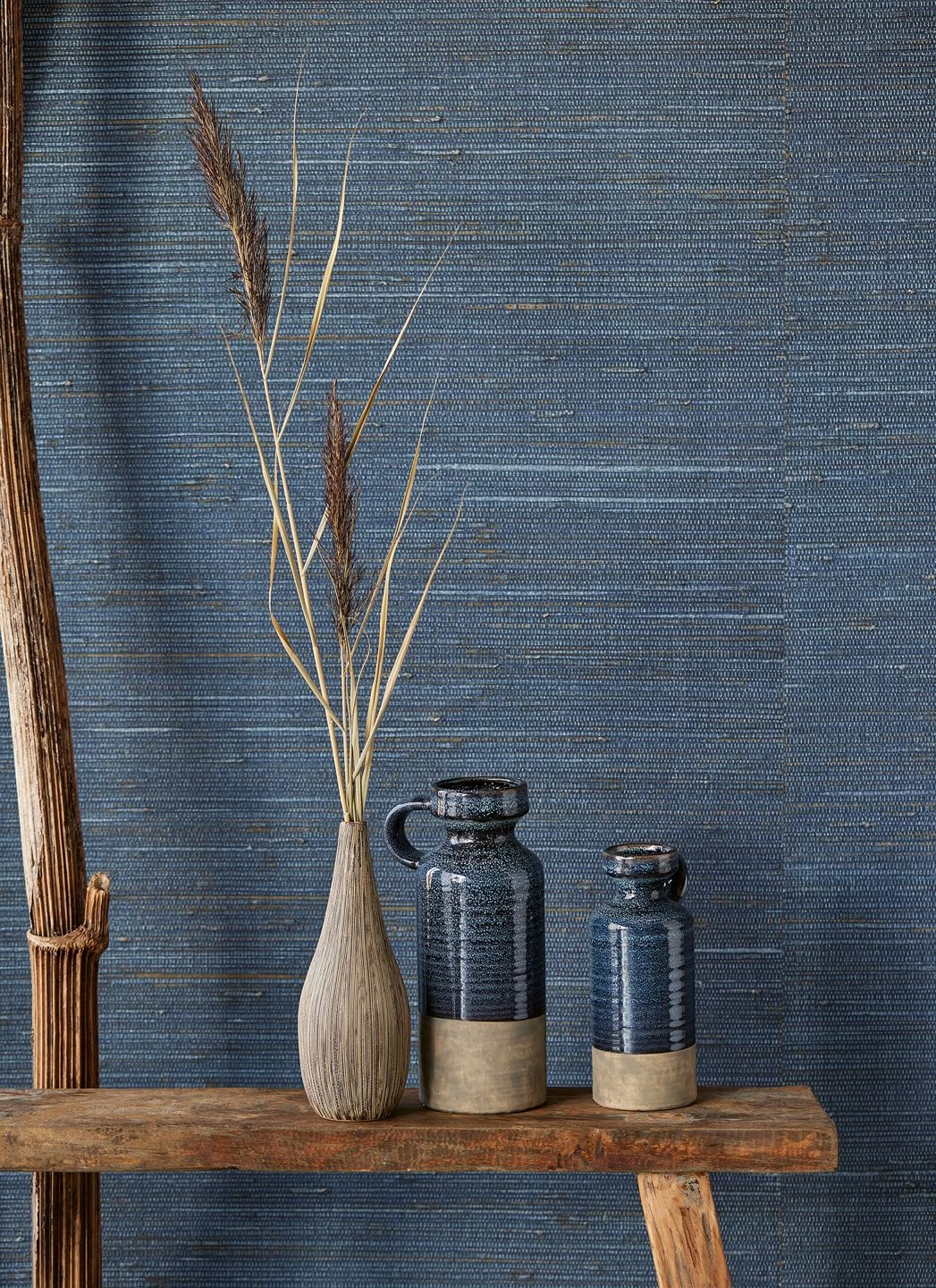 Die zauberhaften Blautöne dieser Tapete aus natürlichen Gräsern erzählen von der Weite des Himmels und der See. Das Geflecht aus getrockneten und gefärbten Grashalmen auf der Papiertapete weist in Farbe und Stärke die leichten Unregelmäßigkeiten echten Naturmaterials auf und belebt Ihre Wand wirkungsvoll. Die entspannenden Blautöne sorgen in Verbindung mit dem vorteilhaften Raumklima des Naturmaterials für einen Raum zum Wohlfühlen.