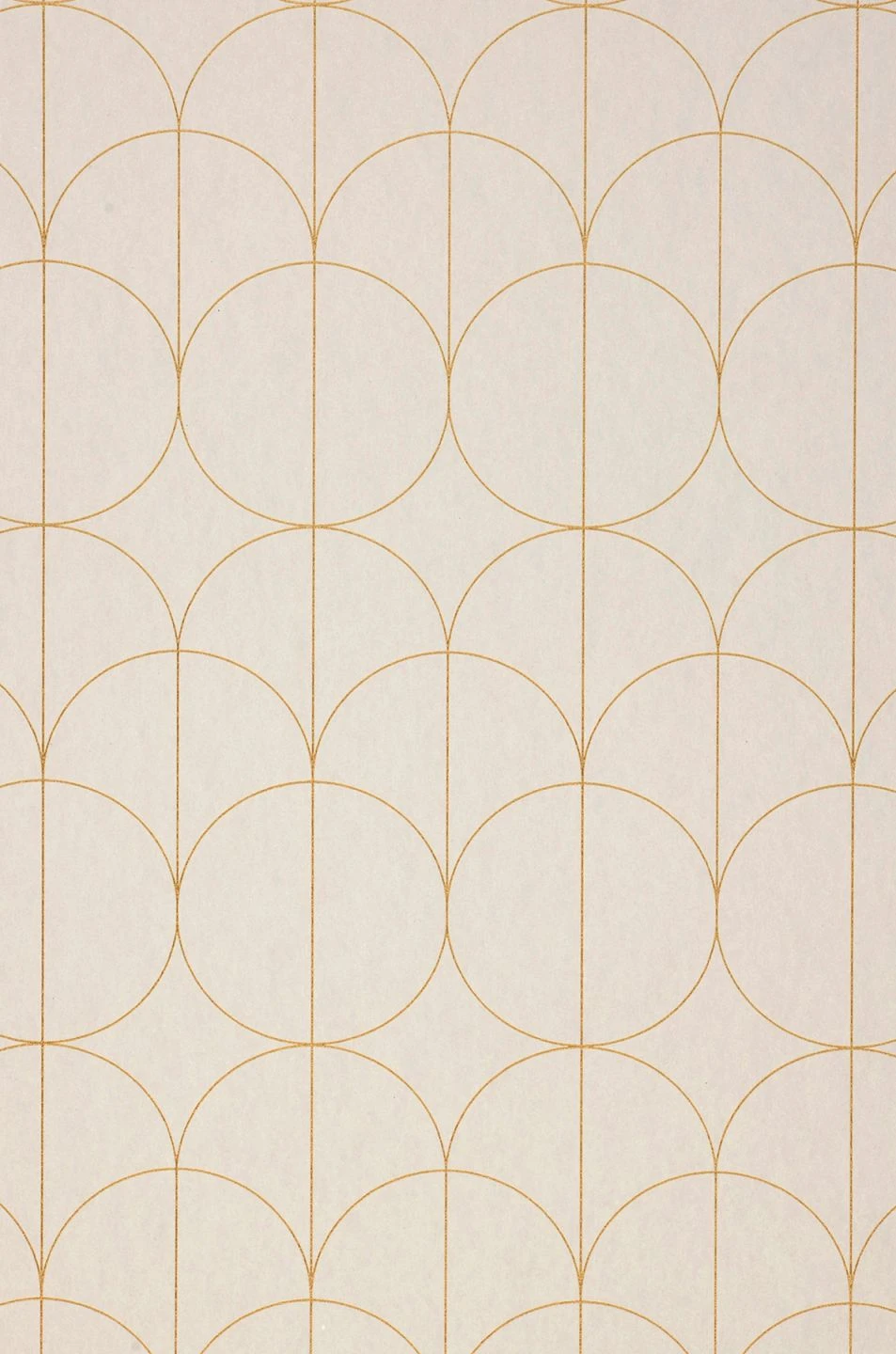 Luxuriösen Schick im Stil des Art Deco verströmt die Vliestapete „Havana“. Aus feinen, in Perlgold schimmernden Linien entstehen Bögen und Kreise wie ein kostbares, aus feinem Golddraht gearbeitetes Mobile. Die goldenen Ornamente entfalten im Kontrast zum matten grauweißen Untergrund ihre besondere Wirkung. Einrichtungselemente in der Ästhetik des Art Deco und gold- oder messingfarbene Dekoration ergänzen die Tapete perfekt.
