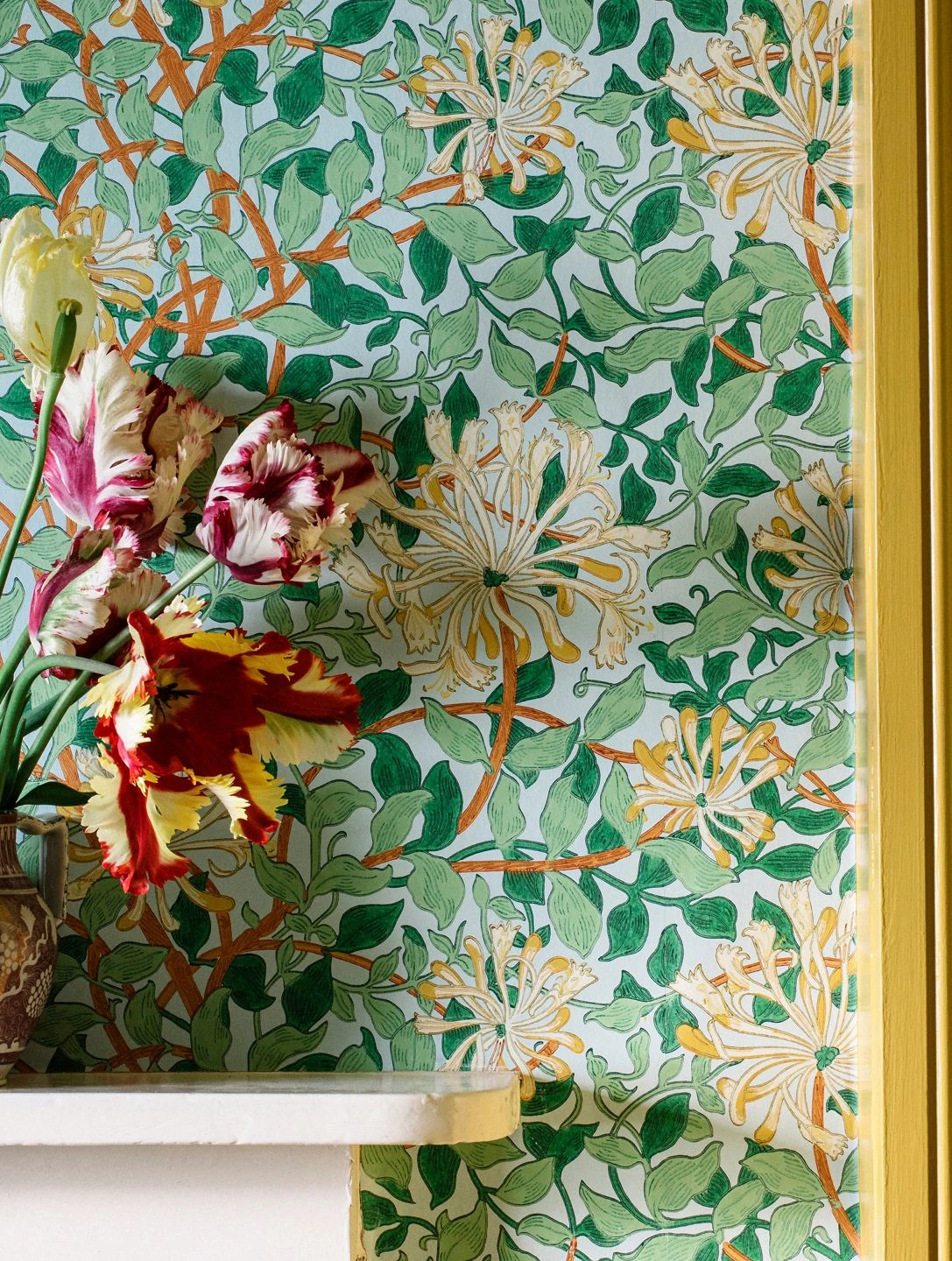 - MusterfarbeBrauntöne, Cremeweiss, Ginstergelb, Grüntöne