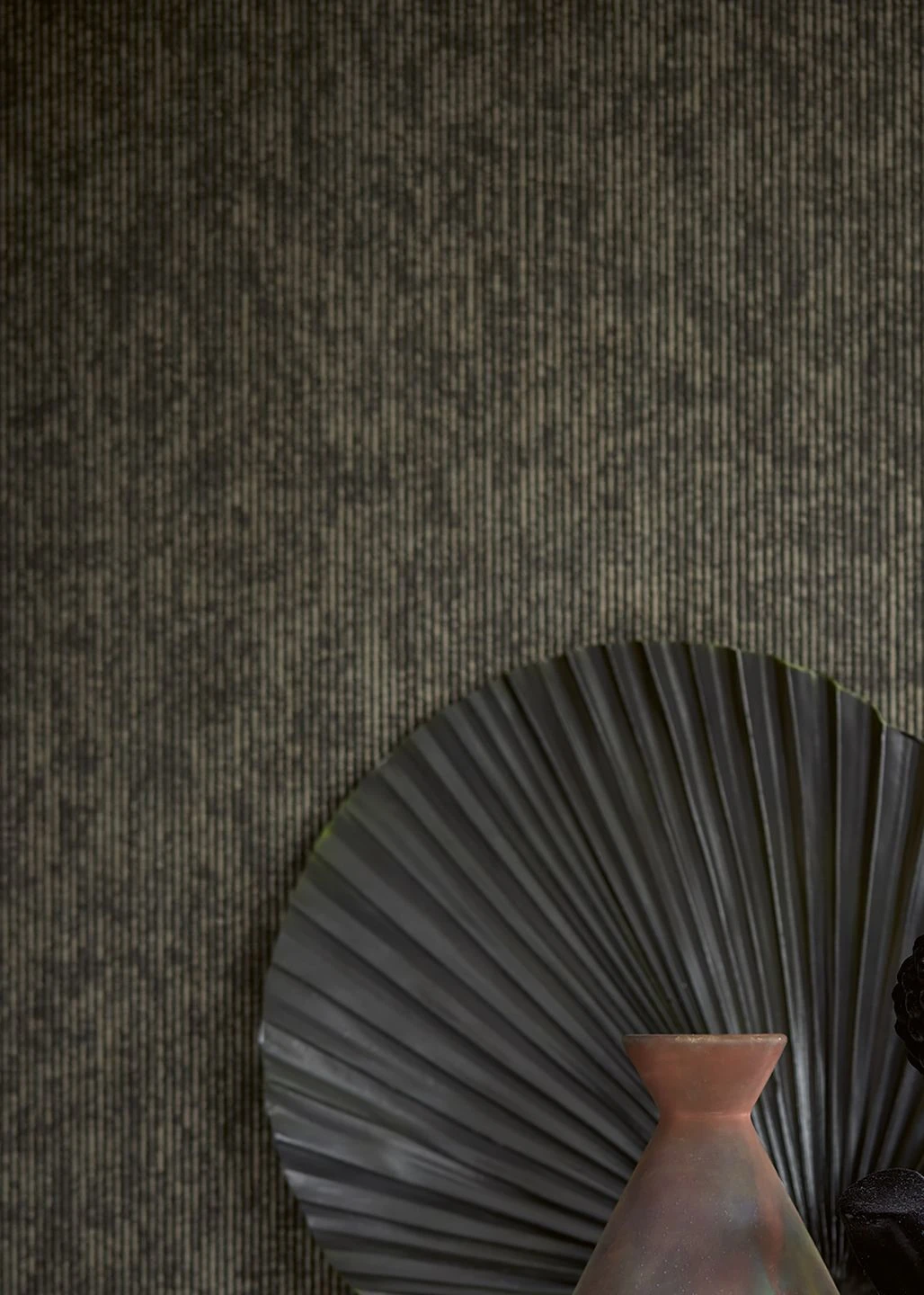 Schmale Streifen aus schwarzem Flock auf dem graumelierten Untergrund der Vliestapete geben der Oberfläche von „Hotaru“ eine fühlbar geriffelte Haptik. Die Beschaffenheit des Flocks und die glatte Tapete darunter vermischen sich zu einem Zusammenspiel von Licht und Schatten, das die Fläche Ihrer Wand zu einem Hingucker macht. Dunkle Möbel oder kräftige bunte Farben ergänzen die Flocktapete gleichermaßen attraktiv.