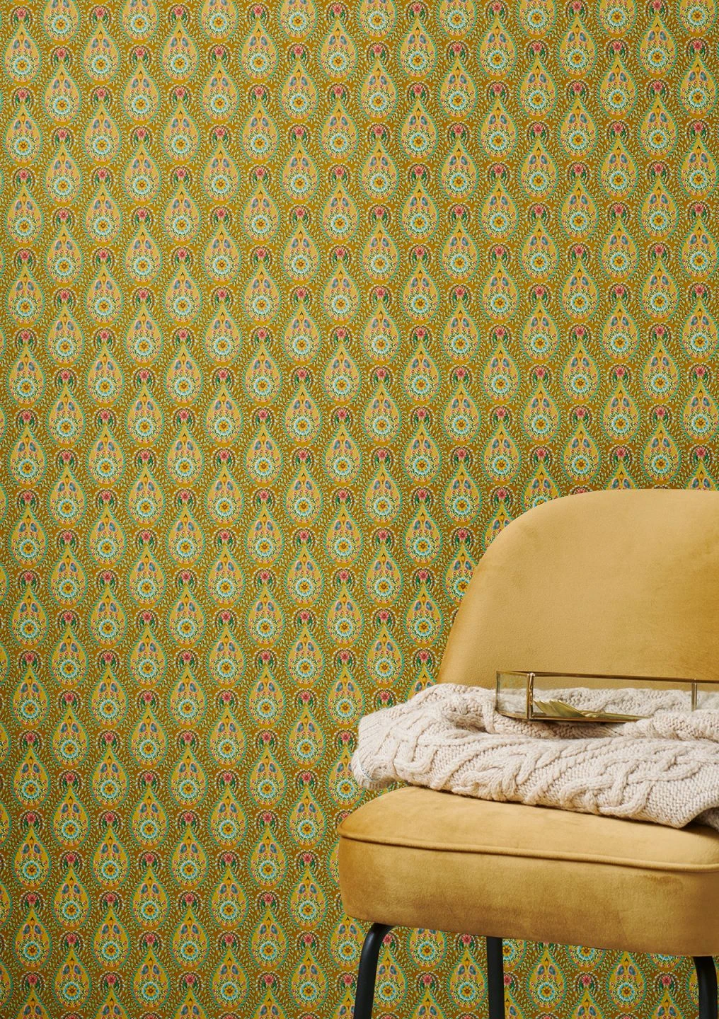 Intensive Gelbtöne wie die kräftigen Farben exotischer Gewürze beleben diese Vliestapete und sorgen dafür, dass in Ihren Räumen immer die Sonne scheint. Die tropfenförmigen orientalischen Muster in bunten Farben setzen sich bei näherem Hinsehen aus winzigen Blüten, Blättern und Schmetterlingen zusammen. Es entsteht ein lebensfroher, ausdrucksstarker Wandschmuck mit vielfältigen Kombinationsmöglichkeiten.