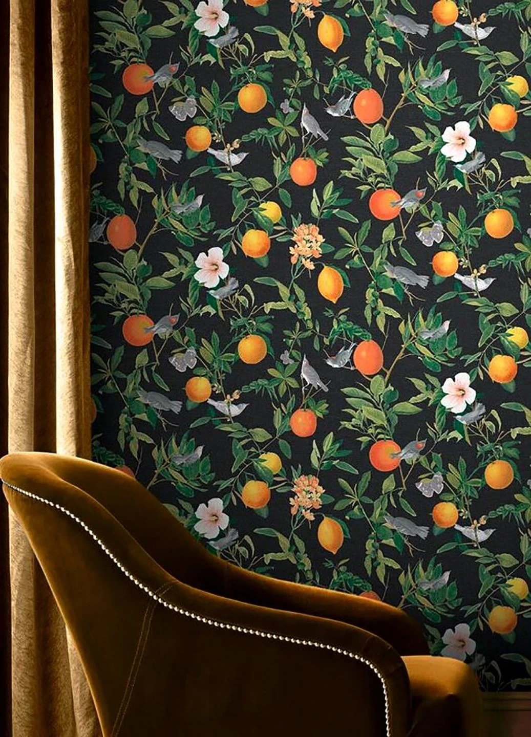 Kennen Sie das Land, in dem Zitronen und Orangen wachsen? Motivtapete Imari nimmt sie mit auf eine fruchtig romantische Reise. Das tropische Muster hat einen hohen Entspannungsfaktor und zeigt sich in den bunten Farben auf schwarzgrauem Fond ausdrucksstark. Die appetitanregende Wirkung ist in außergewöhnlichen Esszimmern von großem Vorteil.