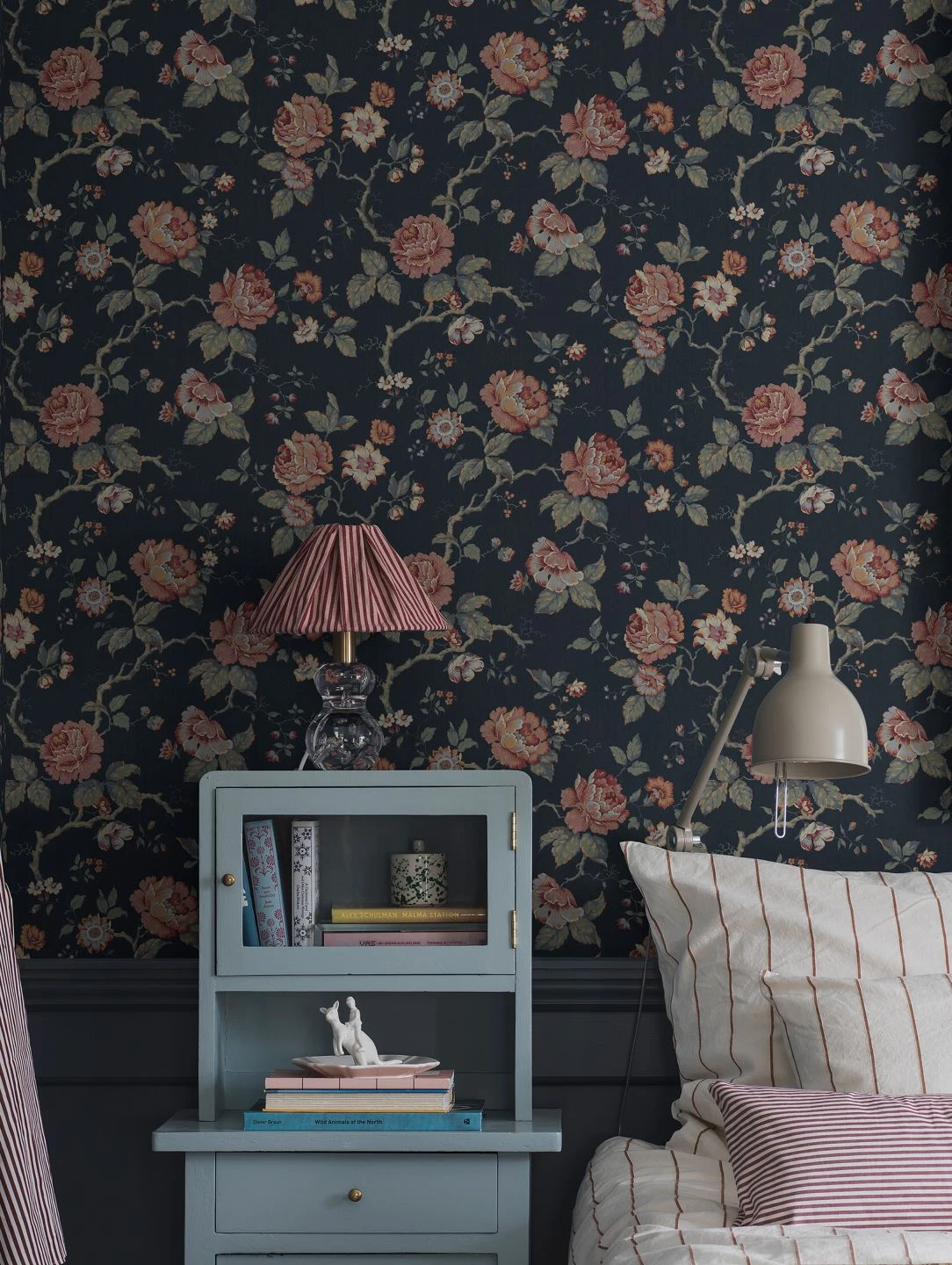 - MusterfarbeGrüntöne, Hellblaugrau, Hellgraubeige, Purpurrot, Rosenholz