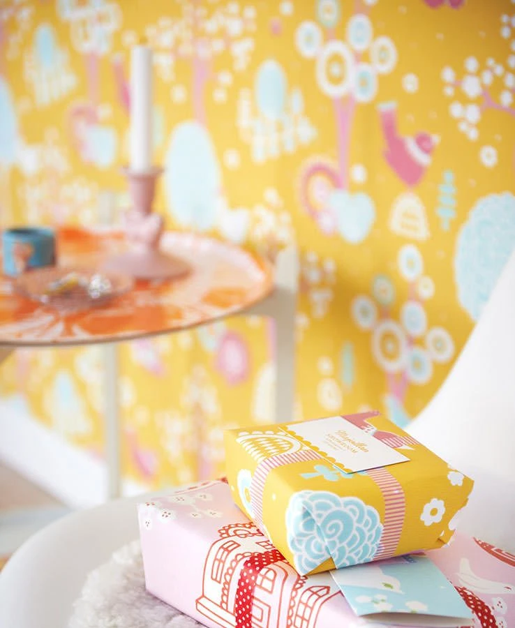 Fruchtiges Maisgelb bestimmt den farblichen Hintergrund der Majvillan Designtapete, die auch Erwachsene in träumerische Stimmung versetzt. Sonnig gute Laune ist damit vorprogrammiert. Buntes Frühlingserwachen, das zu neuen Taten anregt, symbolisieren die teils stilisierten Musterelemente aus der Natur.