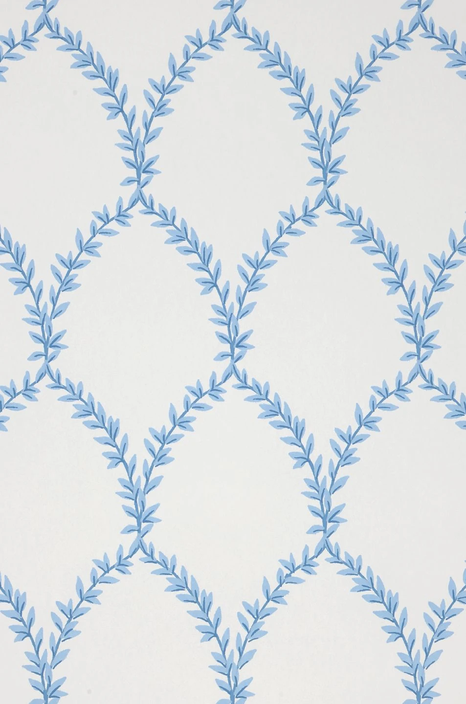 Zart und filigran wirken die aus graublauen und pastellblauen Blättern gewundenen Kränze, die sich auf dieser Vliestapete zu einem feinen Muster verbinden. Die Blautöne auf weißem Grund bringen Frische und Helligkeit in jeden Raum. Kombiniert mit weißen Möbeln oder im Landhaus-Stil, entfaltet die Tapete ihre ganze Strahlkraft.