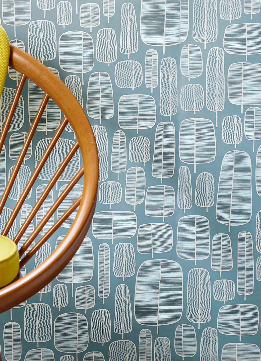 Auf hellblauem Hintergrund wird mit einfachen Linien und Schraffuren ein stilisierter Wald angedeutet. Die verschiedenen Silhouetten deuten verschiedene Baumarten an und bilden zusammen einen freundlichen Wald, der licht und leicht wirkt. Modern und gleichzeitig zeitlos schmückt die Vliestapete Ihre Wände mit ihren zarten Farben und Formen.