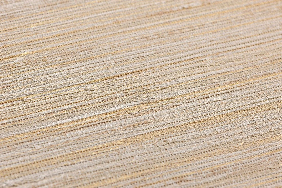 Struktur spielt mit naturnahen Farben wie Beige, Braunbeige, Perlgold und umgekehrt. Unser Auge spielt mit und kann in der hochwertigen Grastapete ein breites Spektrum an natürlichen Materialstrukturen wahrnehmen, z.B. Holz mit einer sehr feinen Maserung. Die abwaschbare Vinyl Tapete macht die optische Illusion perfekt und ist dabei so pflegeleicht.