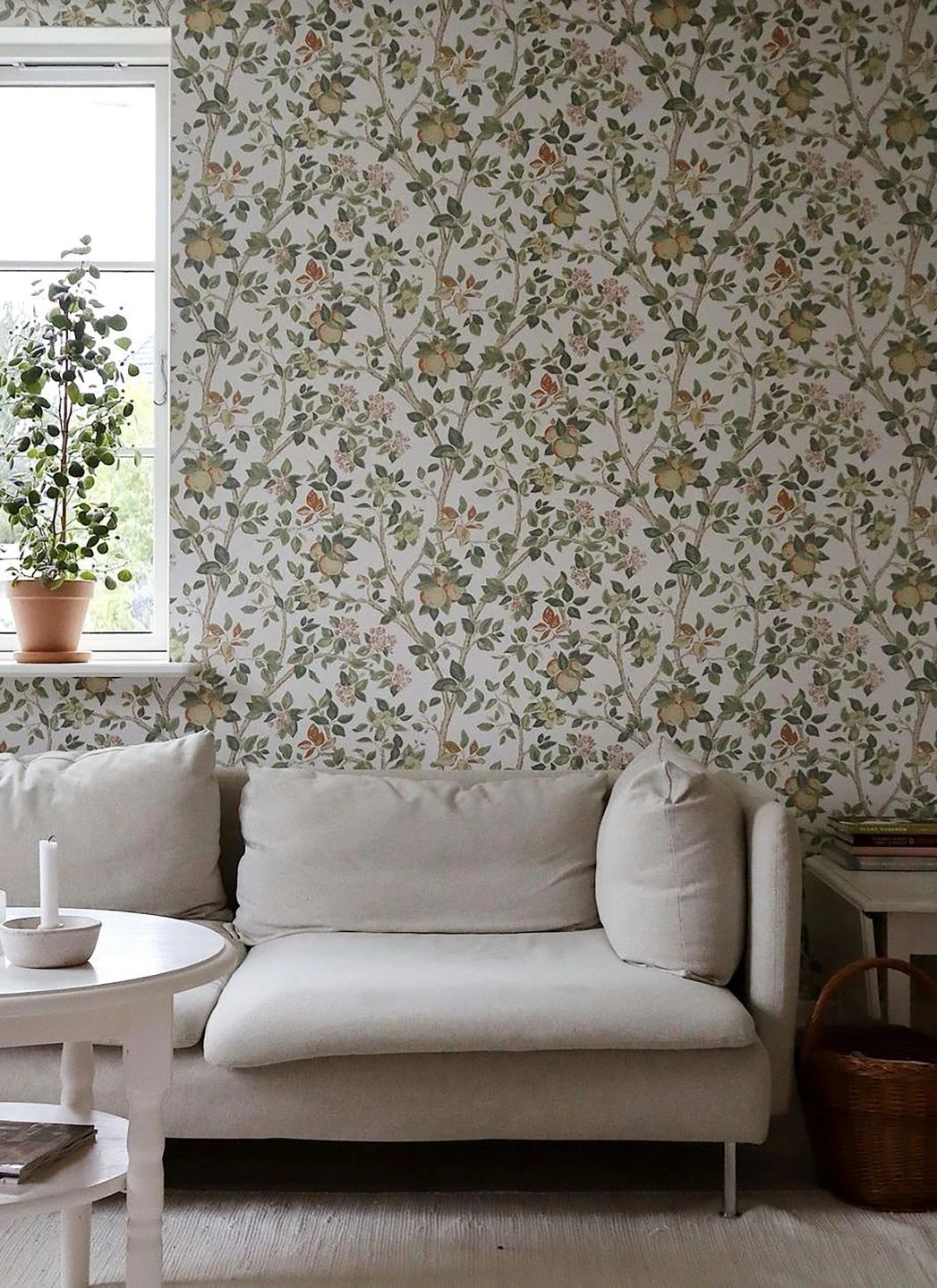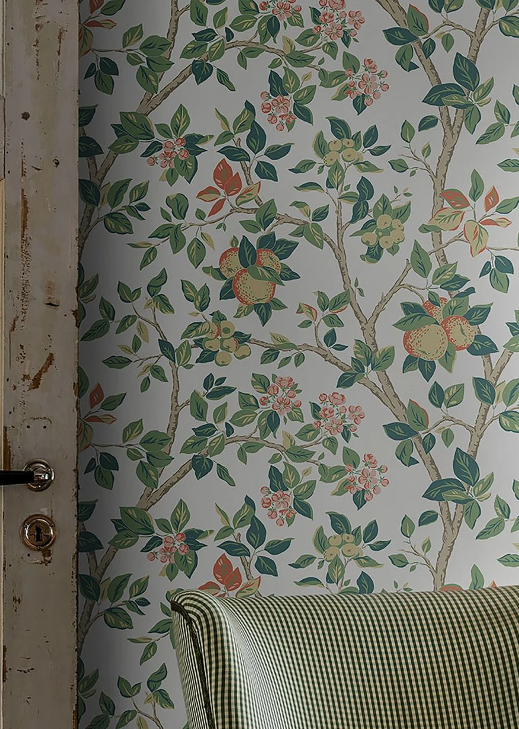 Wie auf einer Zeitreise durch den Jahreszyklus eines Apfelbaums vereint die Vliestapete Blätter, zarte Knospen und Apfelblüten, junge Äpfel und reife, rotwangige Früchte zu einem Gesamtbild. Freundliche, frische Farben sorgen für eine angenehm helle Atmosphäre in dem Raum, den Sie mit dieser Tapete verschönern. Die verwendete Leimdrucktechnik gibt eine Portion handgemachten Charme dazu und macht die Tapete zu einer echten Schönheit.