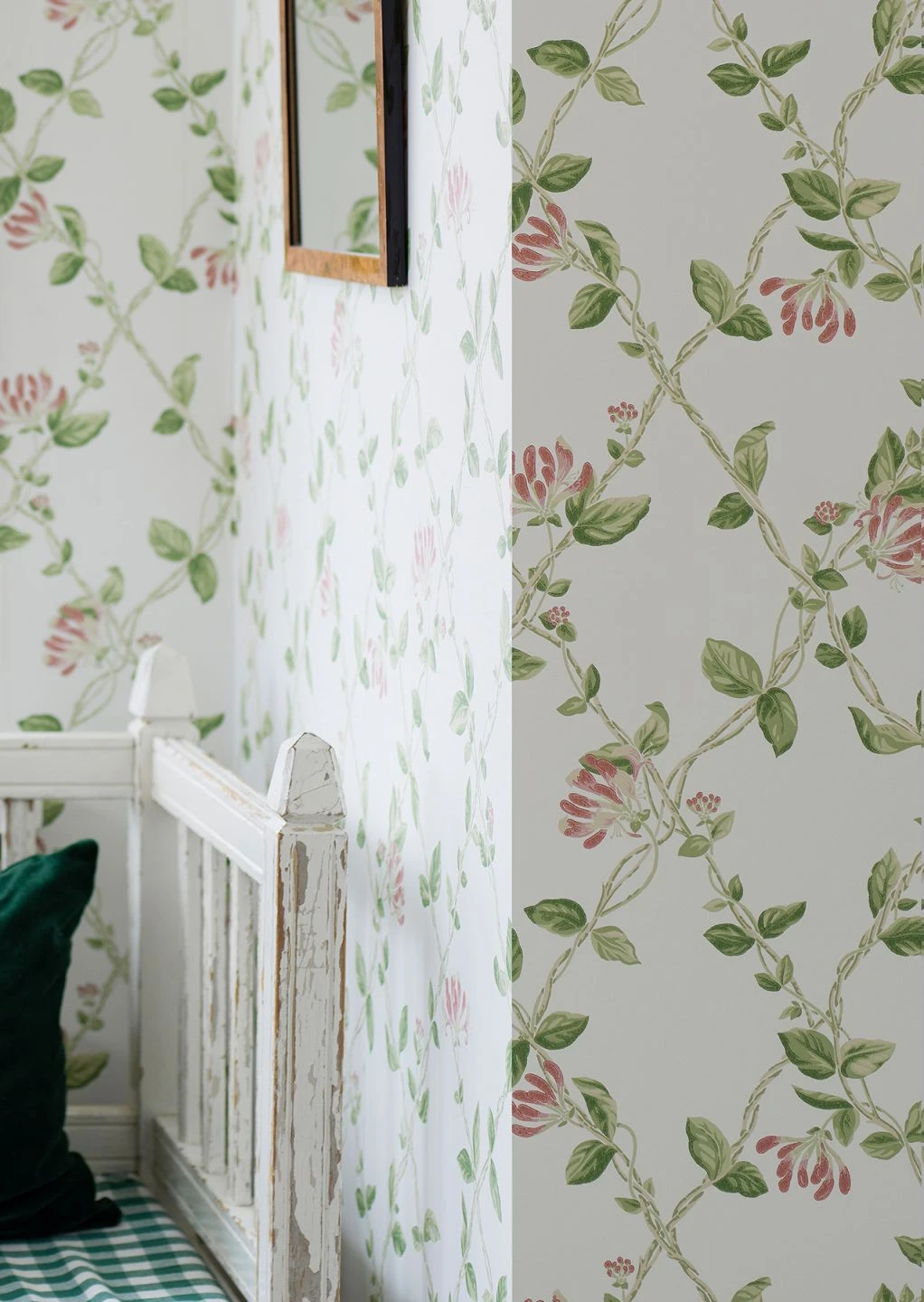 Ein zartes Blumengitter formen die lieblichen Blütenranken in Braunrot, Elfenbein und Grüntönen. Für die helle Grundstimmung sorgt Weiß. Mit der Romantik-Tapete setzen Sie Landhaus-Looks oder Shabby Chic in Szene und geben verspielten Interieurs den richtigen Rahmen. Der Vliesträger ermöglicht ein leichtes Anbringen der Tapete.