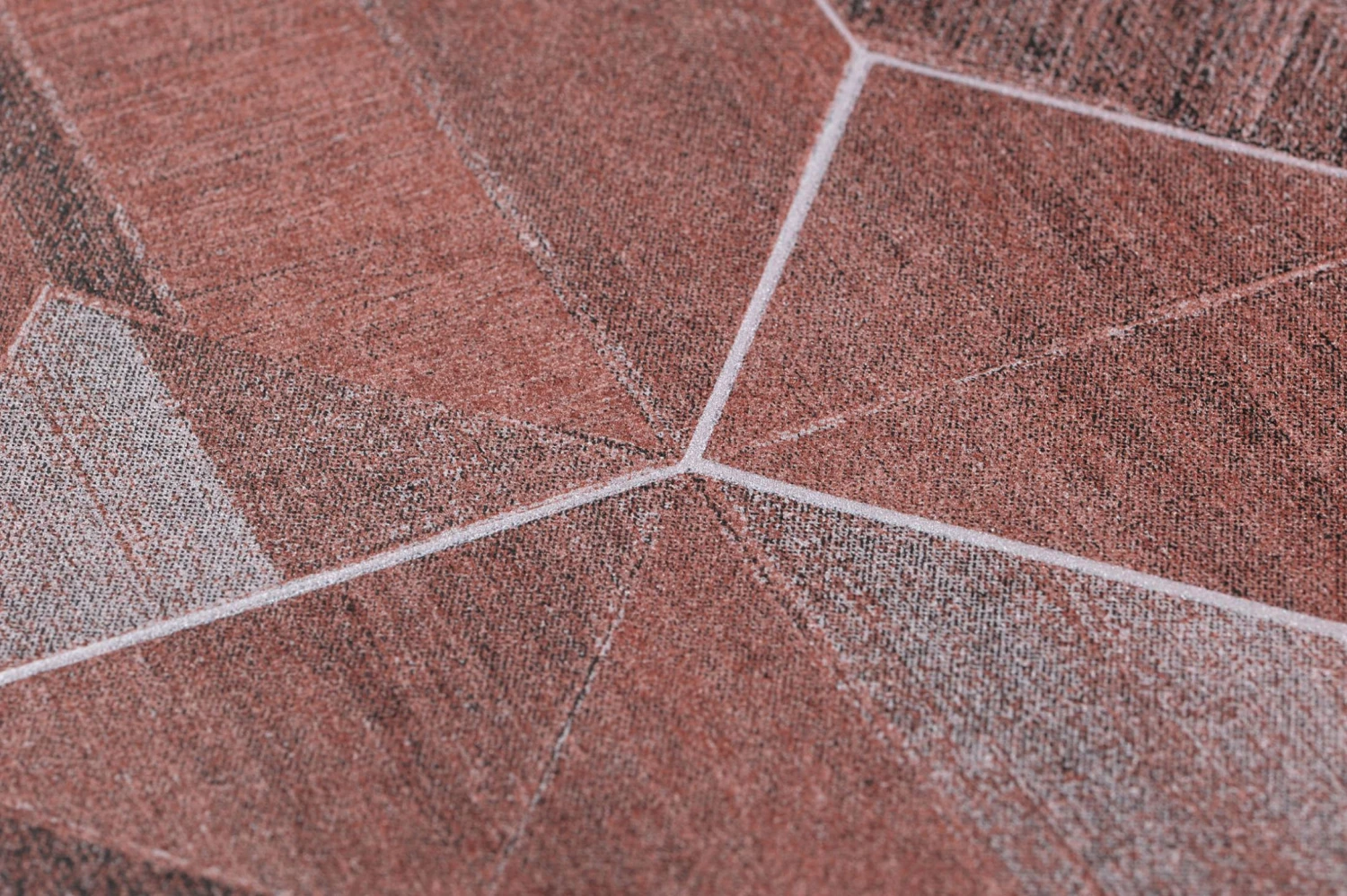 Roter Sand oder rote Erde lassen sich mit dieser Variante von Vliestapete Moura assoziieren. Ungewöhnlich leuchtend präsentiert sie sich wie eine Laune der Natur, die dem Betrachter die Schönheit des Unvollkommen vermittelt. Experimentelle Looks, die für Gesprächsstoff sorgen, können mit der geometrischen Tapete in Hellgrau, Silber und Brauntönen umgesetzt werden.