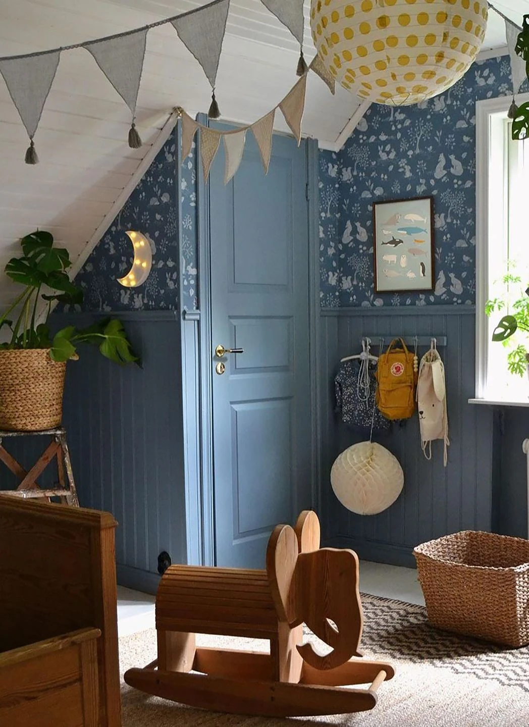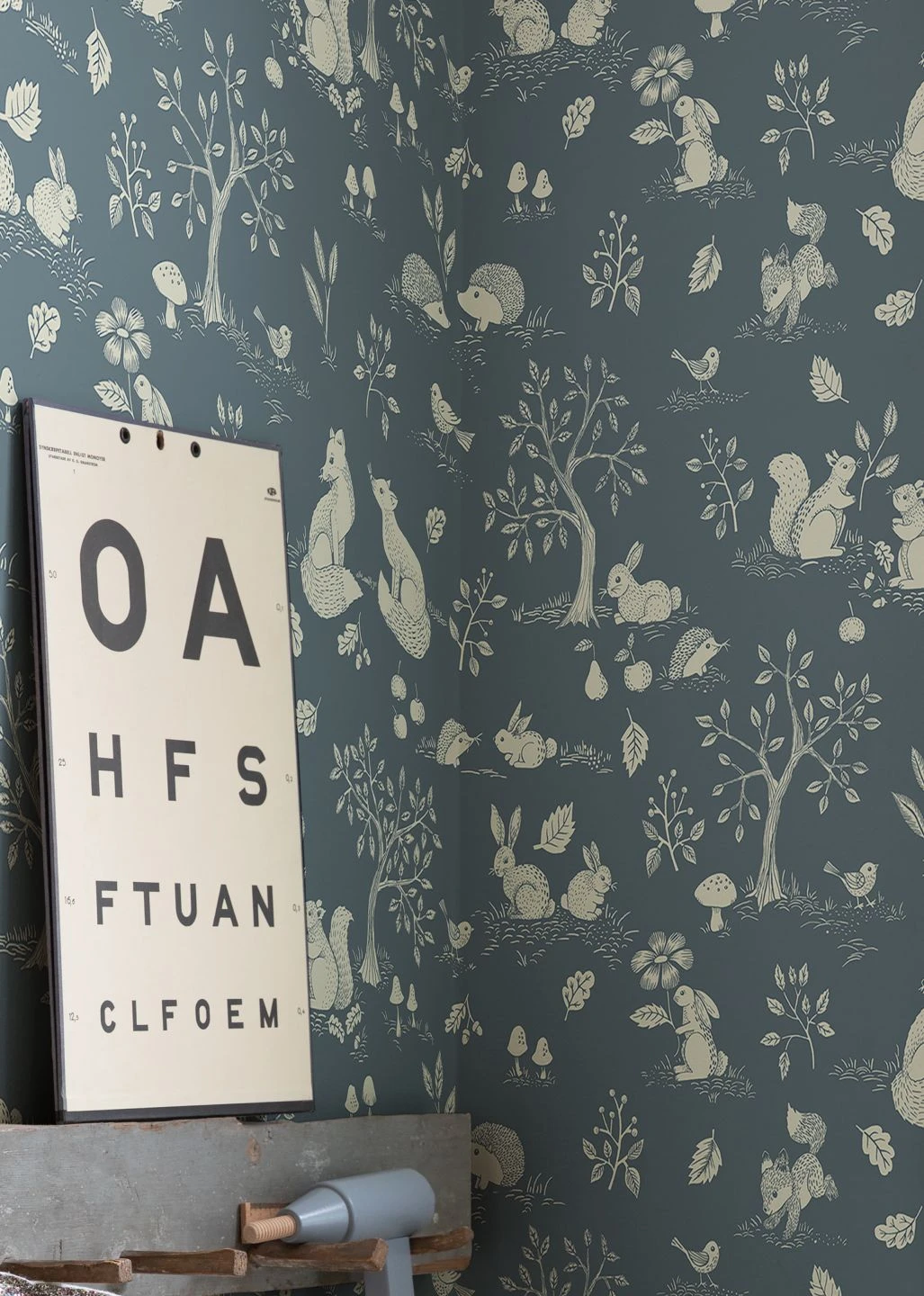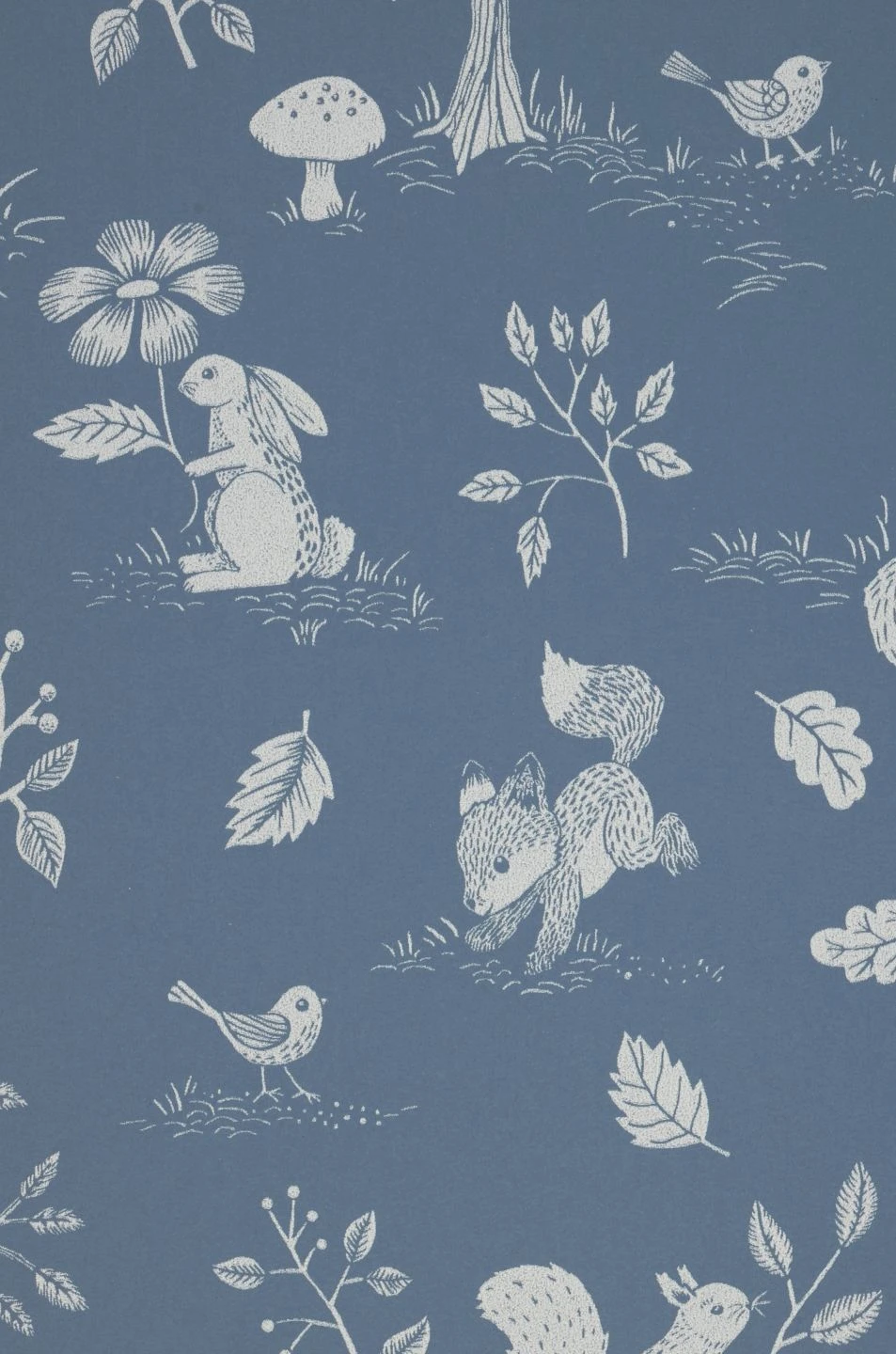 Eine Tapete voller kindlicher Freude an der Natur! Ein Häschen hält eine Blume in der Pfote, ein junger Fuchs hüpft ausgelassen über den Waldboden, ein Singvogel blickt unternehmungslustig in die Welt. Dazwischen Kaninchen, Igel, Bäume, Blätter, Früchte und Pilze. Die verspielten Zeichnungen bekommen Zusammenhalt durch den hellblaugrauen Grund und die grauweiße Musterfarbe. So wirkt die Vliestapete Nils zugleich belebt und ruhig.