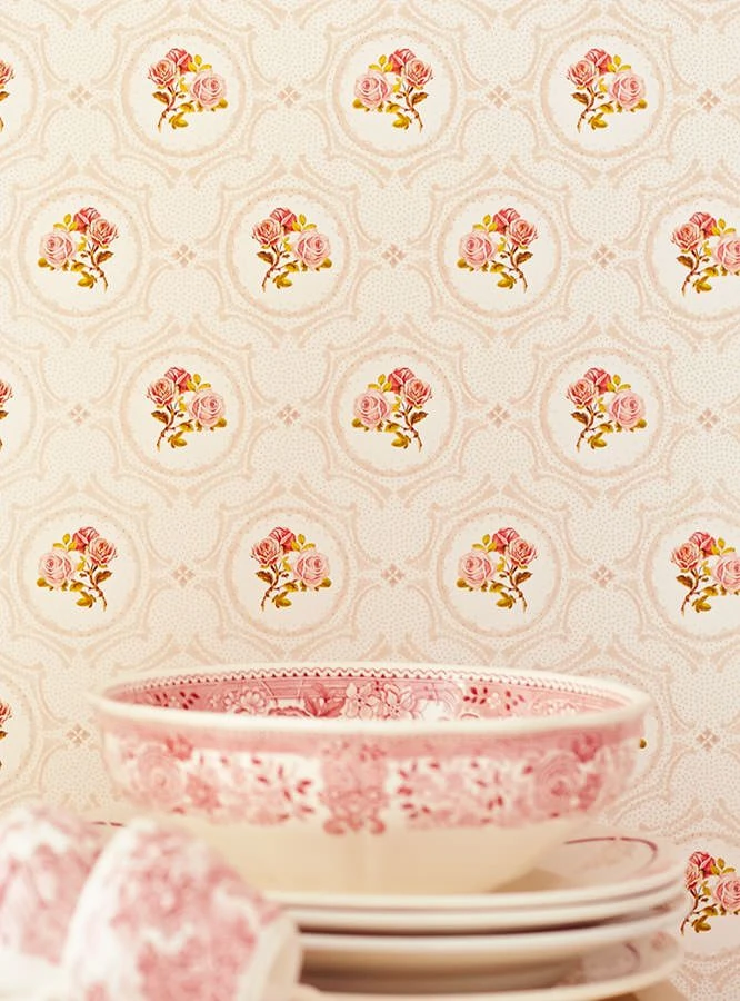 Verspielte Rosenromantik in einer rosaroten Gesamterscheinung – Landhaus Tapete Nissi vereint liebevolle Nostalgie mit traditionellen Stilmotiven der Romantik. Sie vermittelt Geborgenheit und Stille, die nur durch Vogelzwitschern sanft unterbrochen wird. Der verliebte Zauber, den die rosige Design Tapete verströmt, macht sich in jedem Raum wunderbar bemerkbar.
