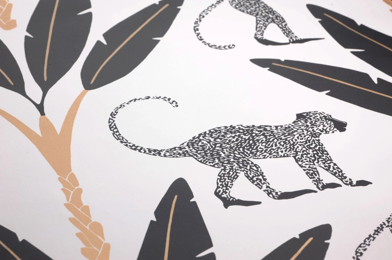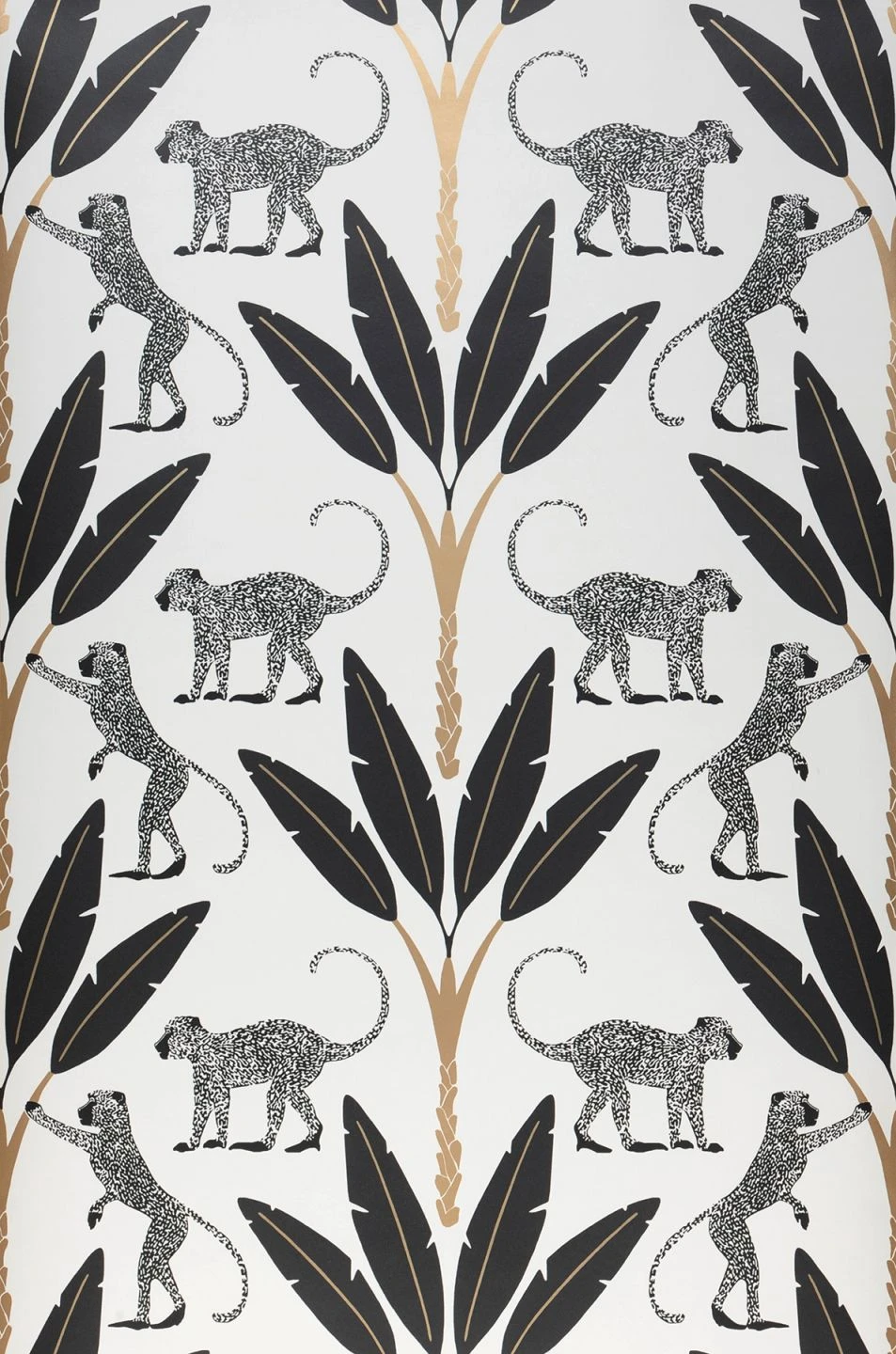 Tropical Art Deco erinnert uns an die fesche Josephine Baker und da lassen wir doch gerne die neugierigen Totenkopfäffchen tanzen. Wer die stilechte Dekadenz der Goldenen Zwanziger liebt, wird von Odette begeistert sein. Das puristisch in Schwarzweiß gehaltene Tapetendesign erhält seinen unverwechselbaren Glamour durch die Stauden in Perlgold.