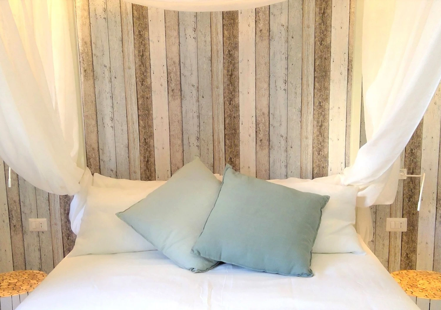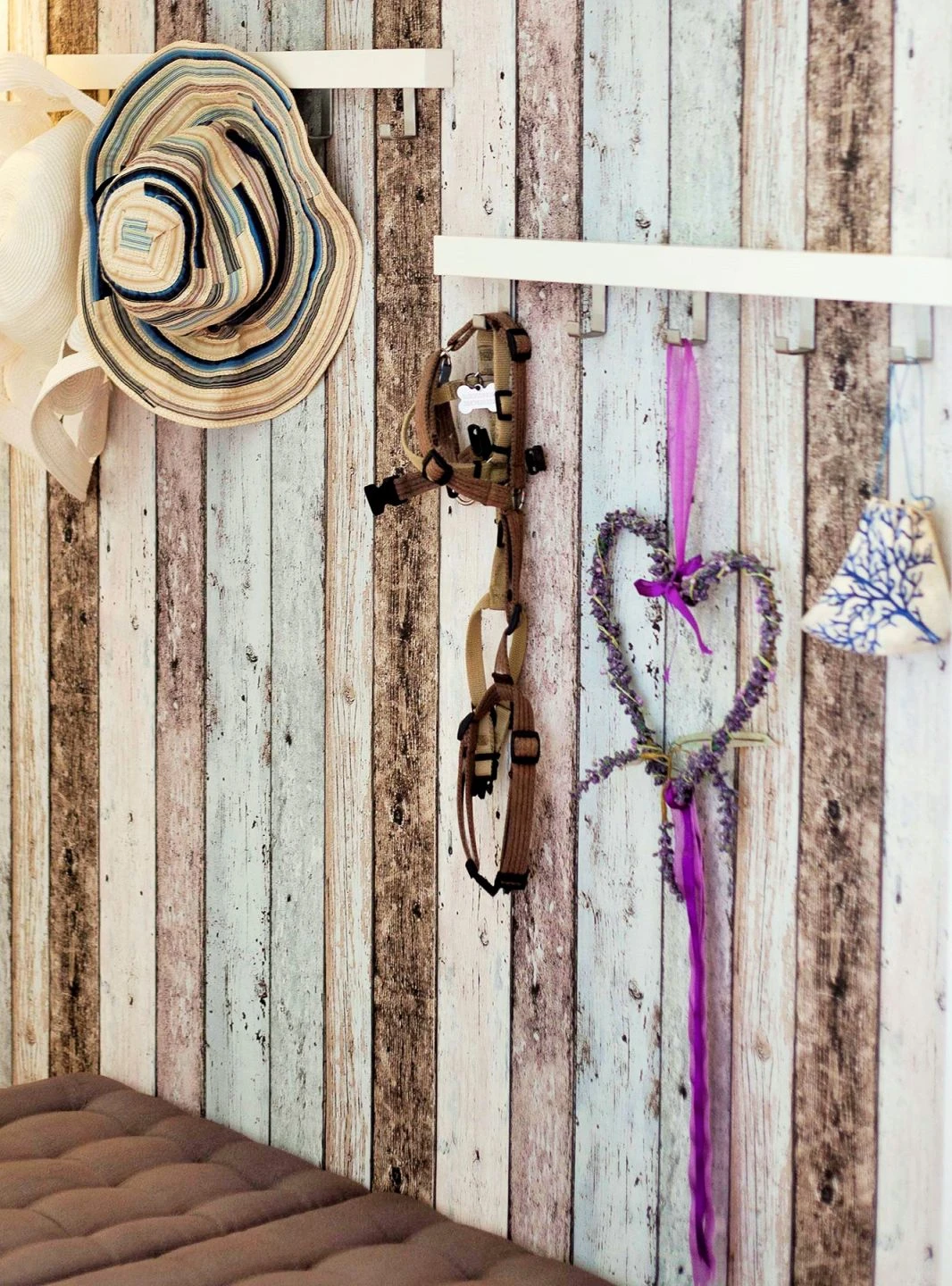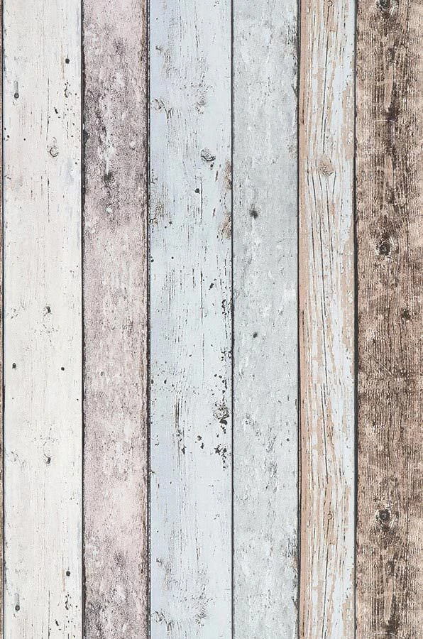 Helle, durch die Einflüsse von Wind und Wetter schon leicht verblasste Braun-, Cremeweiß- und Hellgraublautöne, jeder ein wenig anders, machen den rustikalen Charme der Holzoptik-Tapete aus. Alte Bretter mit Gebrauchsspuren, abblätternde Farbe und Astlöcher, all das ergibt eine ungeheuer lebendige Kulisse für Ihren Raum. Gerade zum Shabby Chic oder ergänzt durch Elemente im maritimen Stil ist „Old Planks“ eine echte Bereicherung – dank der Vinyloberfläche selbst in Ihrem Bad.