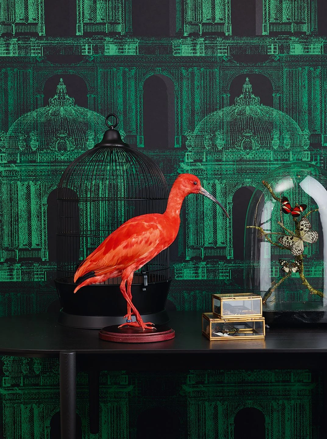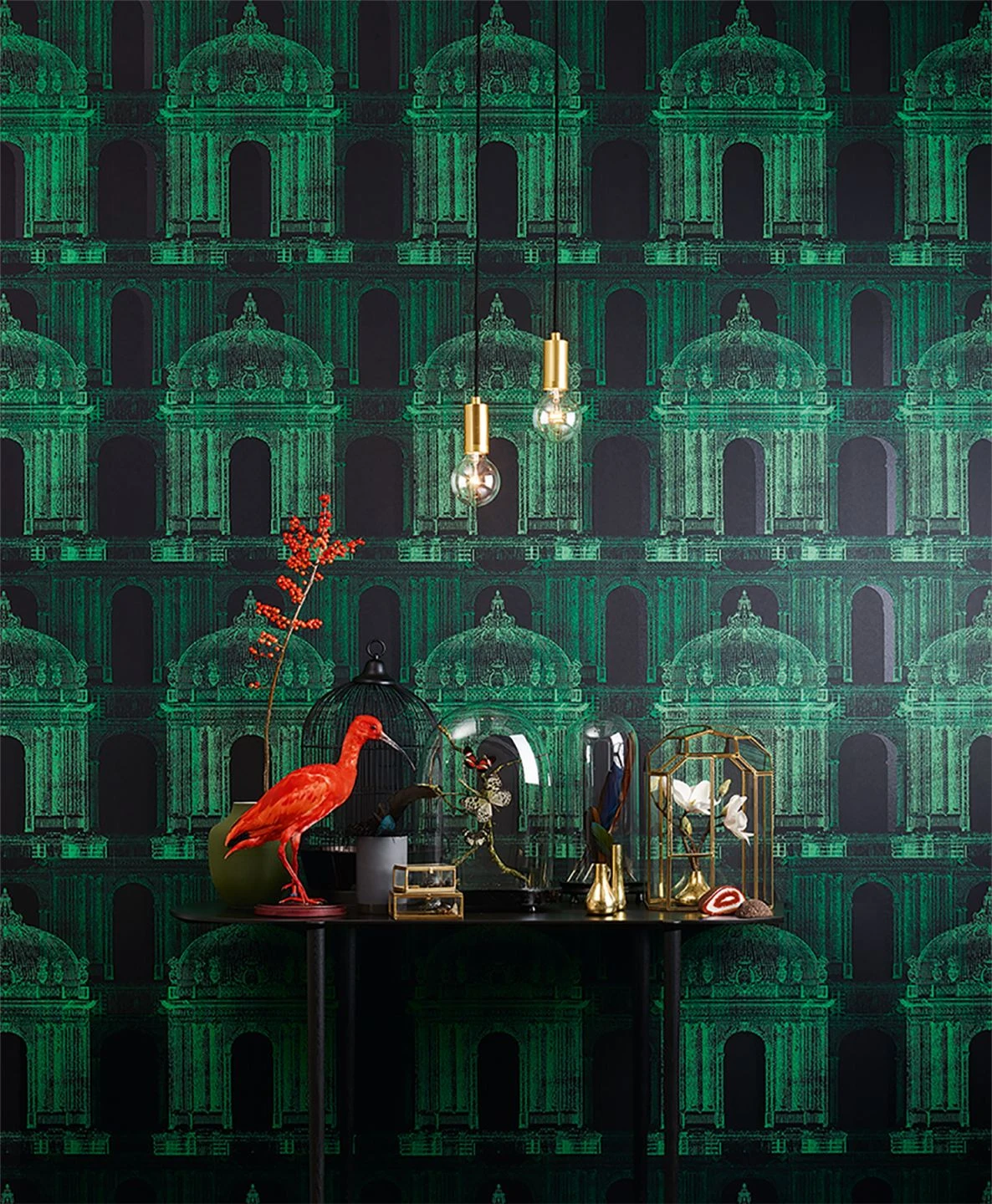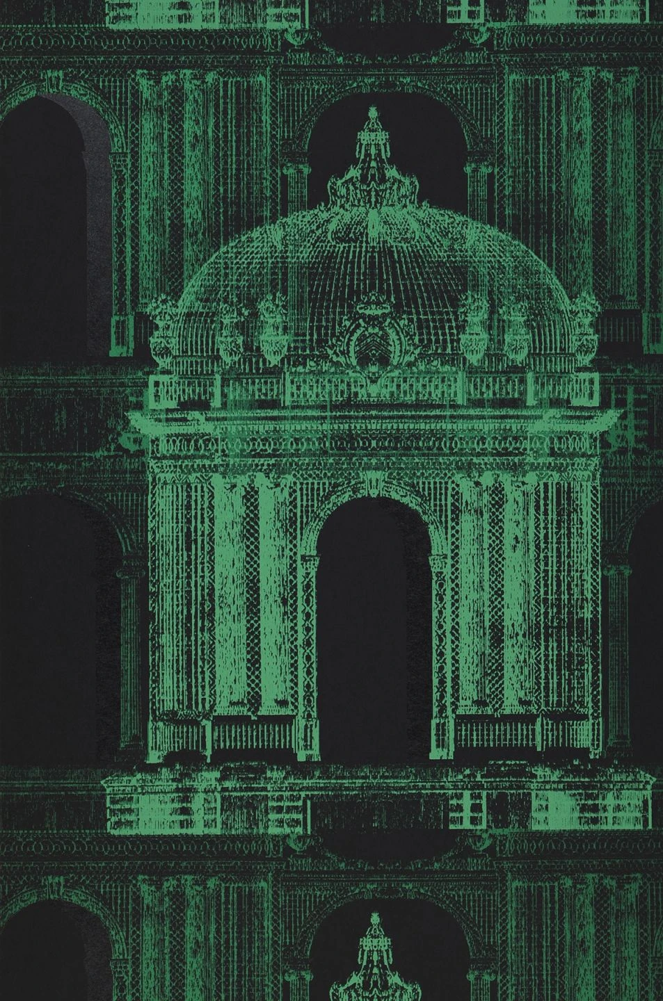 Aufregend, verheißungsvoll, wie in einer großen asiatischen Stadt bei Nacht – Design Tapete Ophelia versteht es, den Betrachter in die grün und schwarz schimmernden Tempel hineinzuziehen, um auf Entdeckungsreise zu gehen. Das außerordentliche Tapetenkunstwerk bietet ein szenisches und sehr atmosphärisches Mustermotiv, das seine kleinen und großen Geheimnisse birgt.