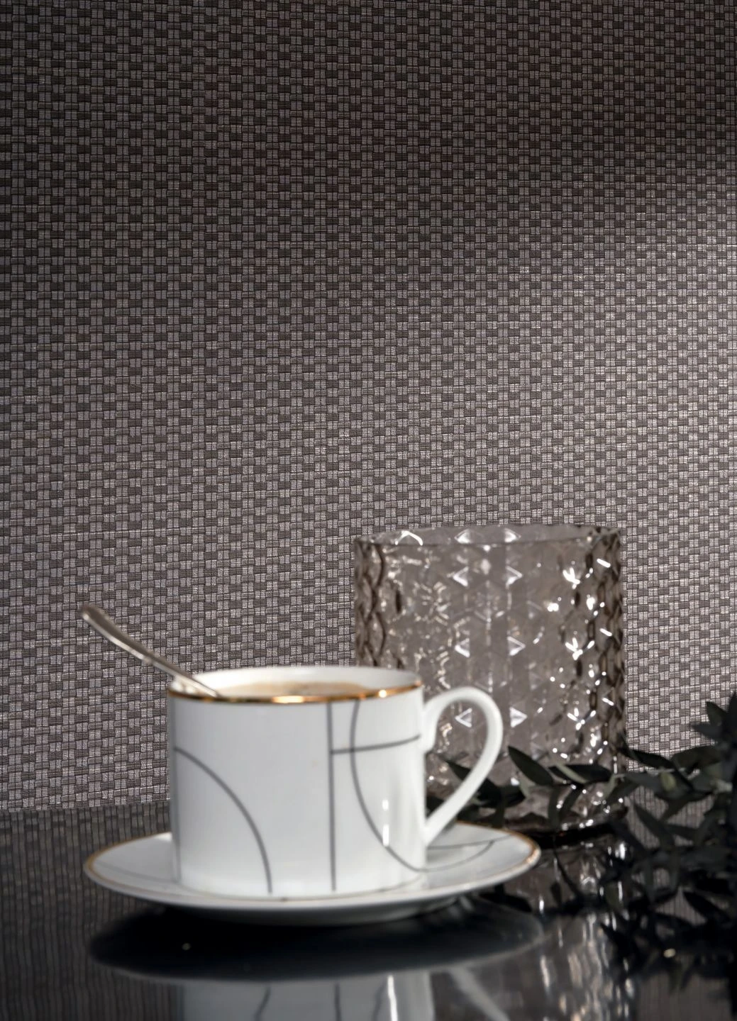 Der Eindruck eines Geflechts ergibt sich bei dieser Vliestapete aus der Verteilung der dunklen Farben, der Form der Farbflächen und der Struktur der Vinyloberfläche und verleiht der Tapete ihre textilähnliche Anmutung. Das kleinteilige Muster aus dunkelgrauen, silbernen und umbragrauen Vierecken folgt der Ästhetik des Bauhauses. Durch die scheuerbeständige Oberfläche können Sie die Tapete auch in Ihrem Badezimmer wunderbar einsetzen.