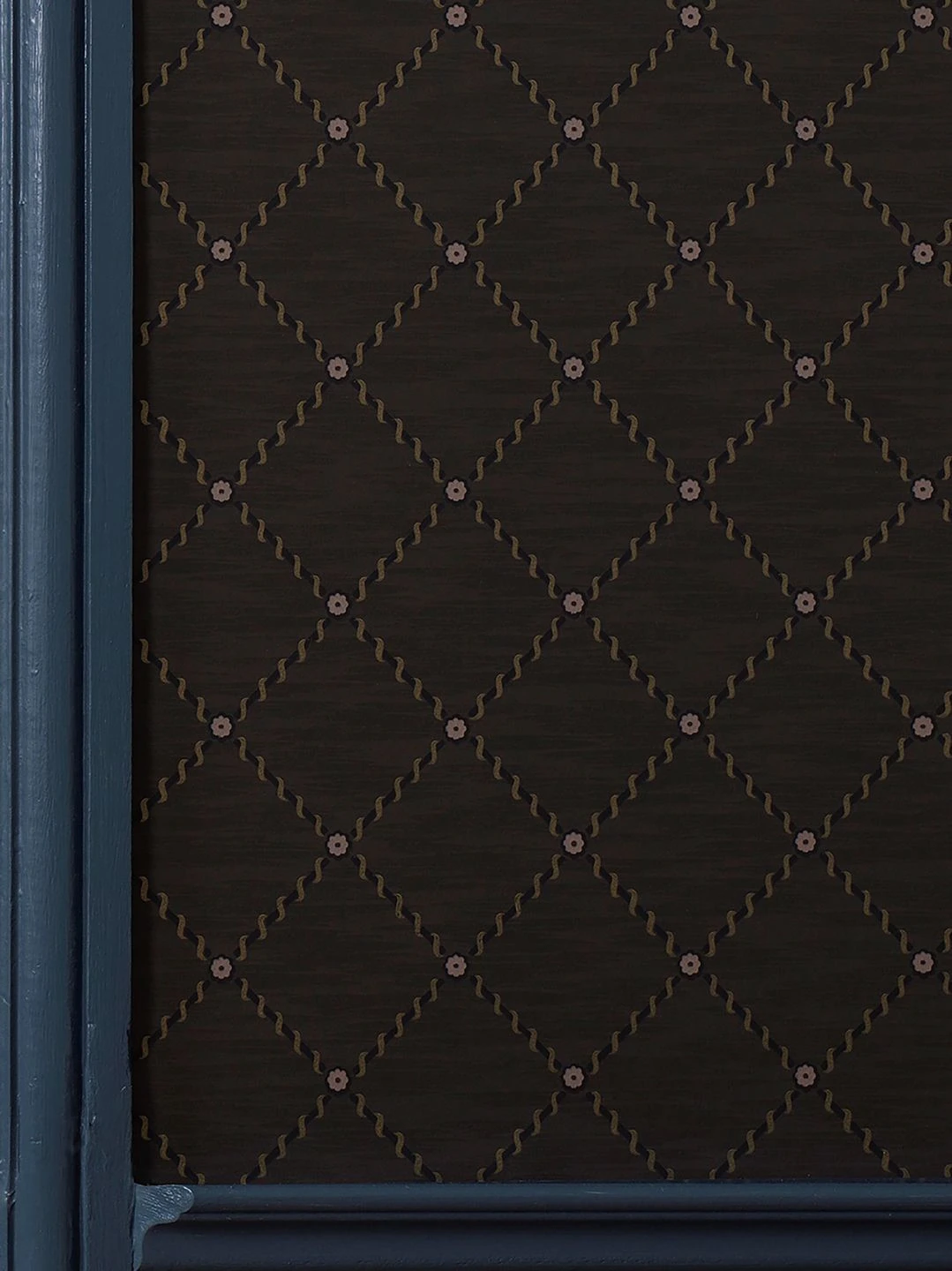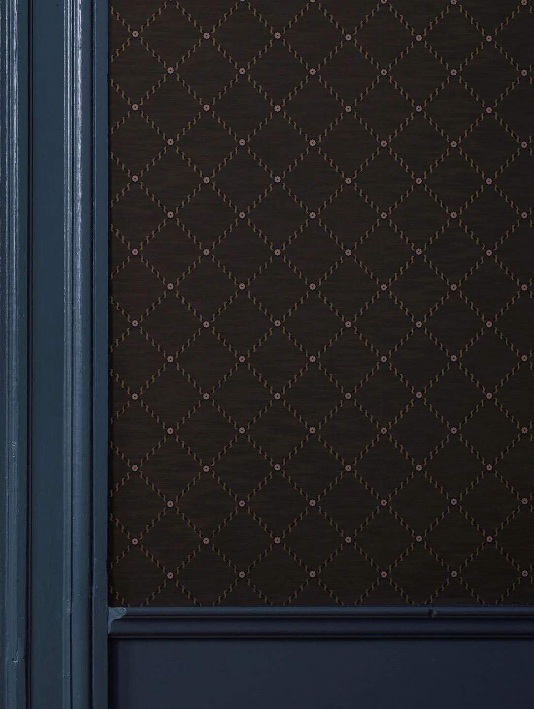 Ein geradliniges, dezentes Muster aus kleinen zartrosafarbenen Blümchen und Rauten mit perlgolden schimmernden Akzenten kombiniert wohlige Dunkelheit mit zarten Farben und ist eine Hommage an den Art Deco. Der graubraune Grund wird durch pinselstrichähnliche Strukturen belebt. Die geometrischen Elemente kleiden Ihr Schlafzimmer, Ess- oder Wohnzimmer in die Retro-Eleganz dieser Stilrichtung oder schmücken ein Hotel mit ihrer Ausdruckskraft.